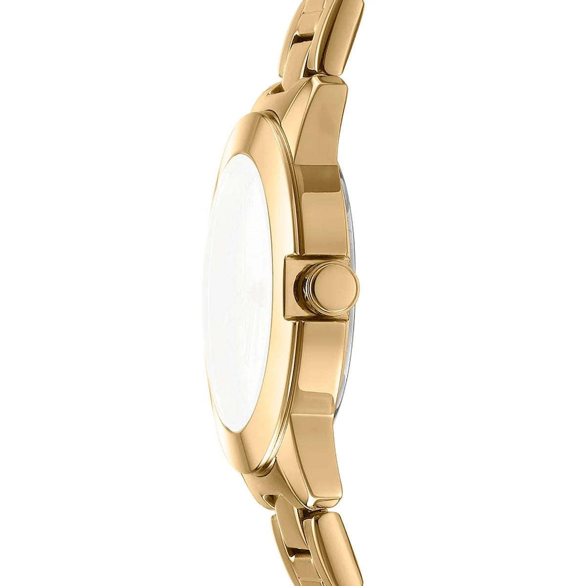 Профил на дамски часовник DKNY – тънък корпус ~7 мм със златисто IP покритие, модел DK1L021M0055