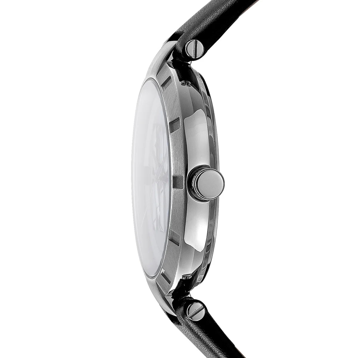 Γυναικείο ρολόι Logo, λευκό φίλντισι, μαύρο δέρμα (38 mm)