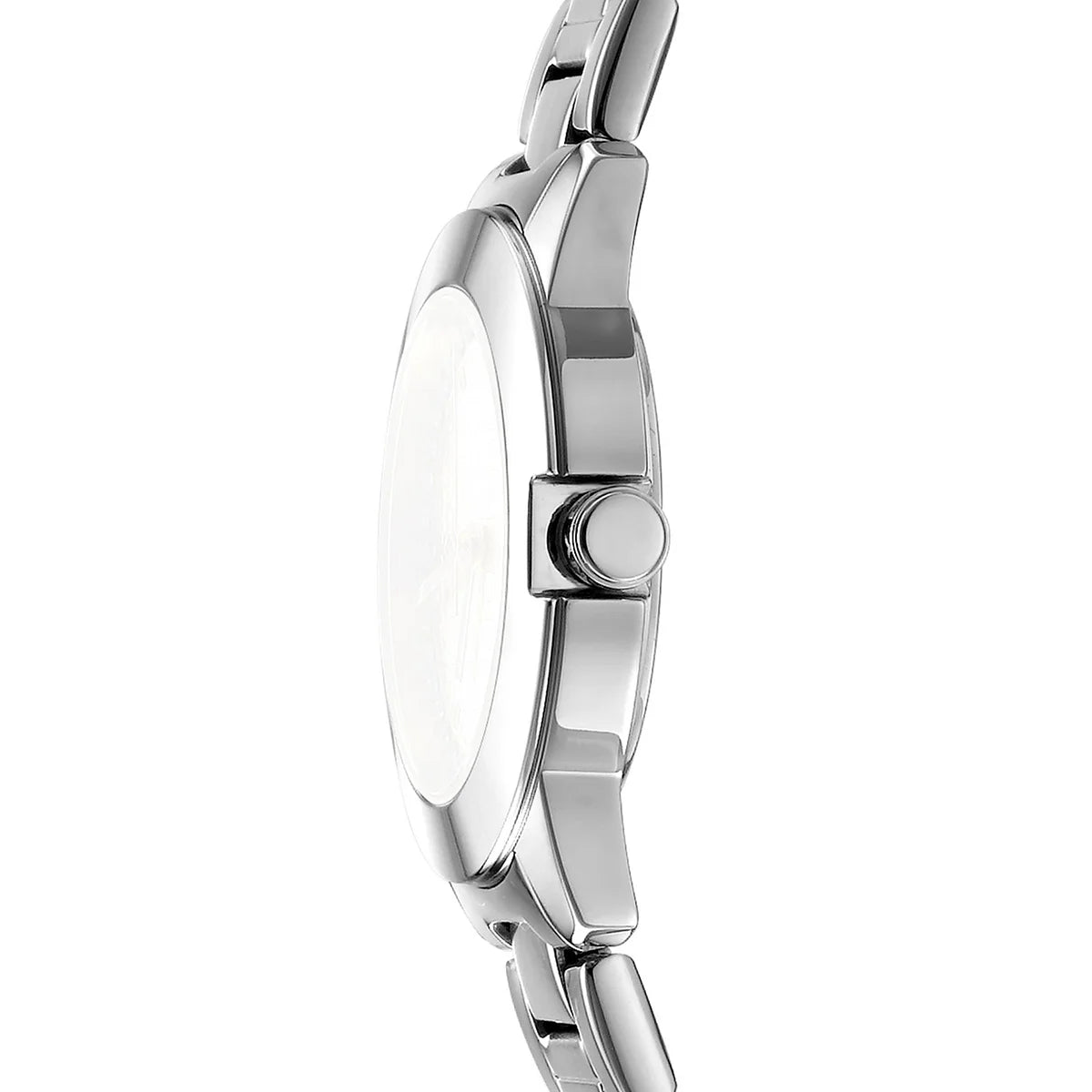 Ο αξιόπιστος ιαπωνικός μηχανισμός quartz Seiko VJ21 (3 δείκτες) εξασφαλίζει ακρίβεια, ενώ το μεταλλικό γυαλί προστατεύει από καθημερινά σημάδια χρήσης. Αντοχή στο νερό 5 ATM – κατάλληλο για βροχή, πιτσιλιές και πλύσιμο χεριών· όχι για κολύμβηση. Η συμπαγής διάμετρος 30 mm και οι ομαλές συνδέσεις του μπρασελέ προσφέρουν άνεση και θηλυκότητα.
