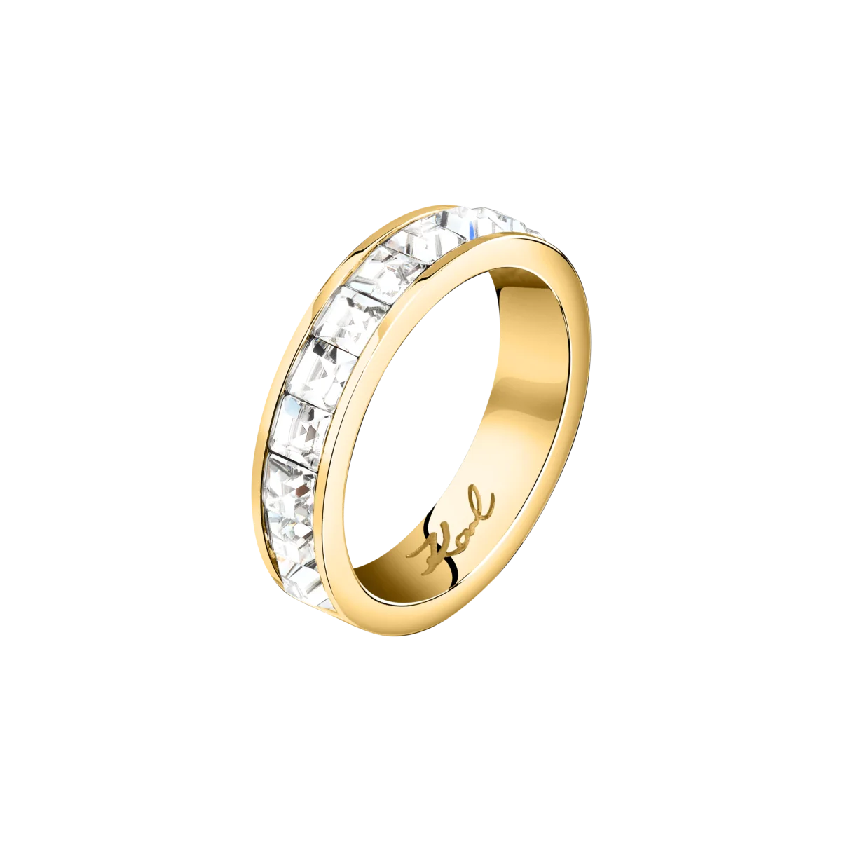 Дамският пръстен Karl Lagerfeld Crystals модел KLAYC48012 е елегантна халка в златист цвят, обсипана с блестящи камъни по цялата горна линия. Дизайнът тип Riviera съчетава минимализъм и лукс – чиста форма, която се превръща в ярък акцент при всяко движение на ръката.