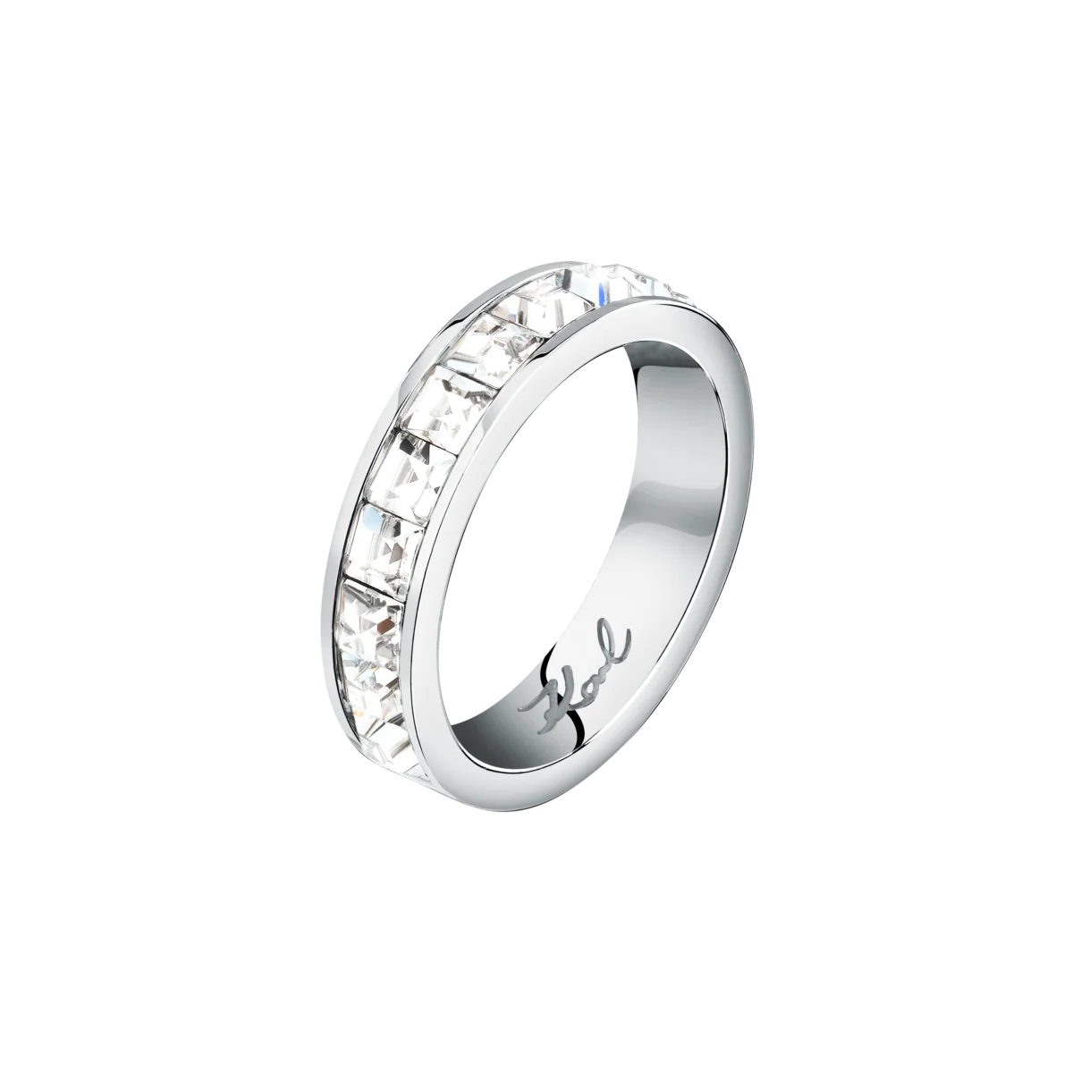 Дамски пръстен Karl Lagerfeld Crystals, сребриста стомана с ред от бели квадратни кристали – модел KLAYC51012