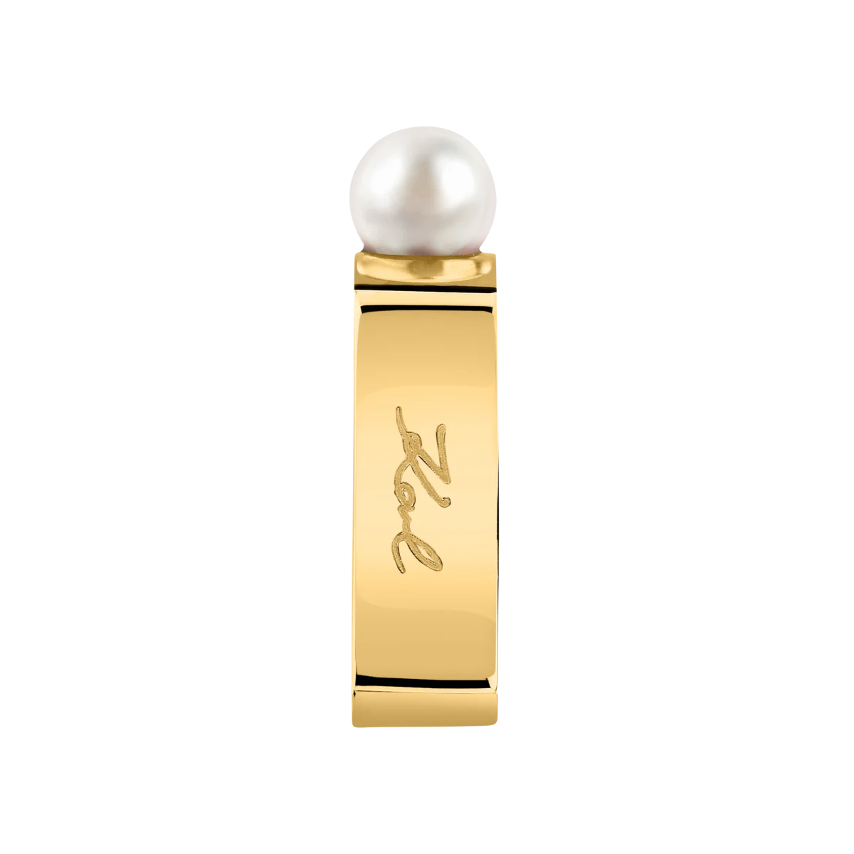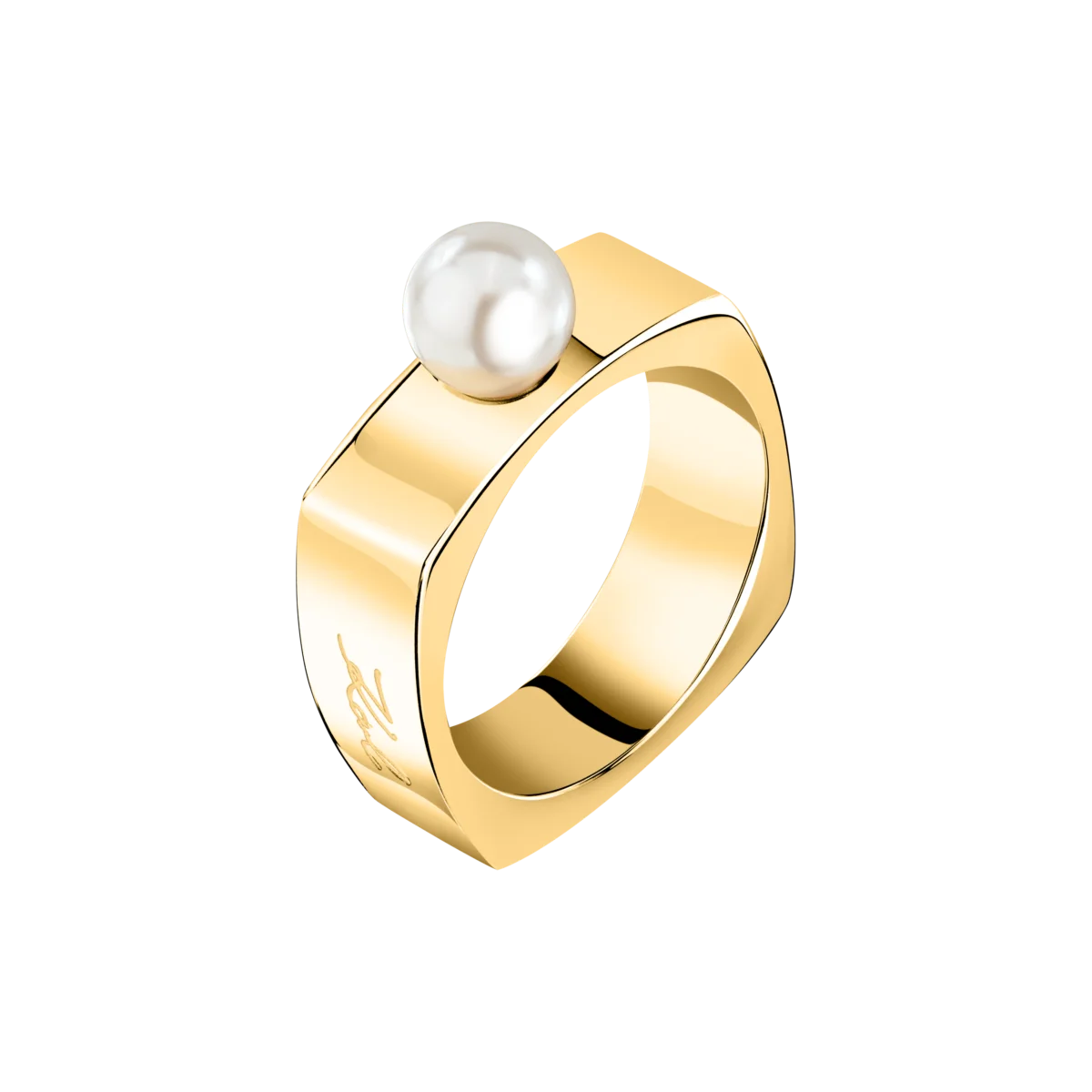Смел и изискан, този дамски пръстен Karl Lagerfeld с перла превръща минимализма в силно модно изявление. Широката квадратна халка в златисто прегръща пръста като скулптурно бижу, а изчистената линия подчертава класическия белег на марката.