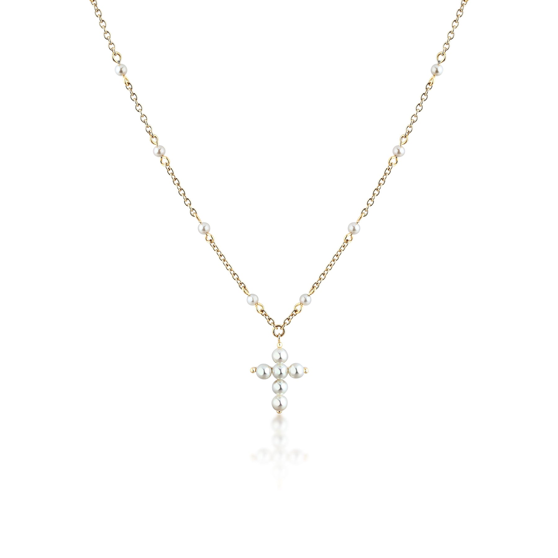Γυναικείο κολιέ Chiara Ferragni με σταυρό, επιχρυσωμένο, με καρδιοειδή ζιργκόν, 38+7 εκ.