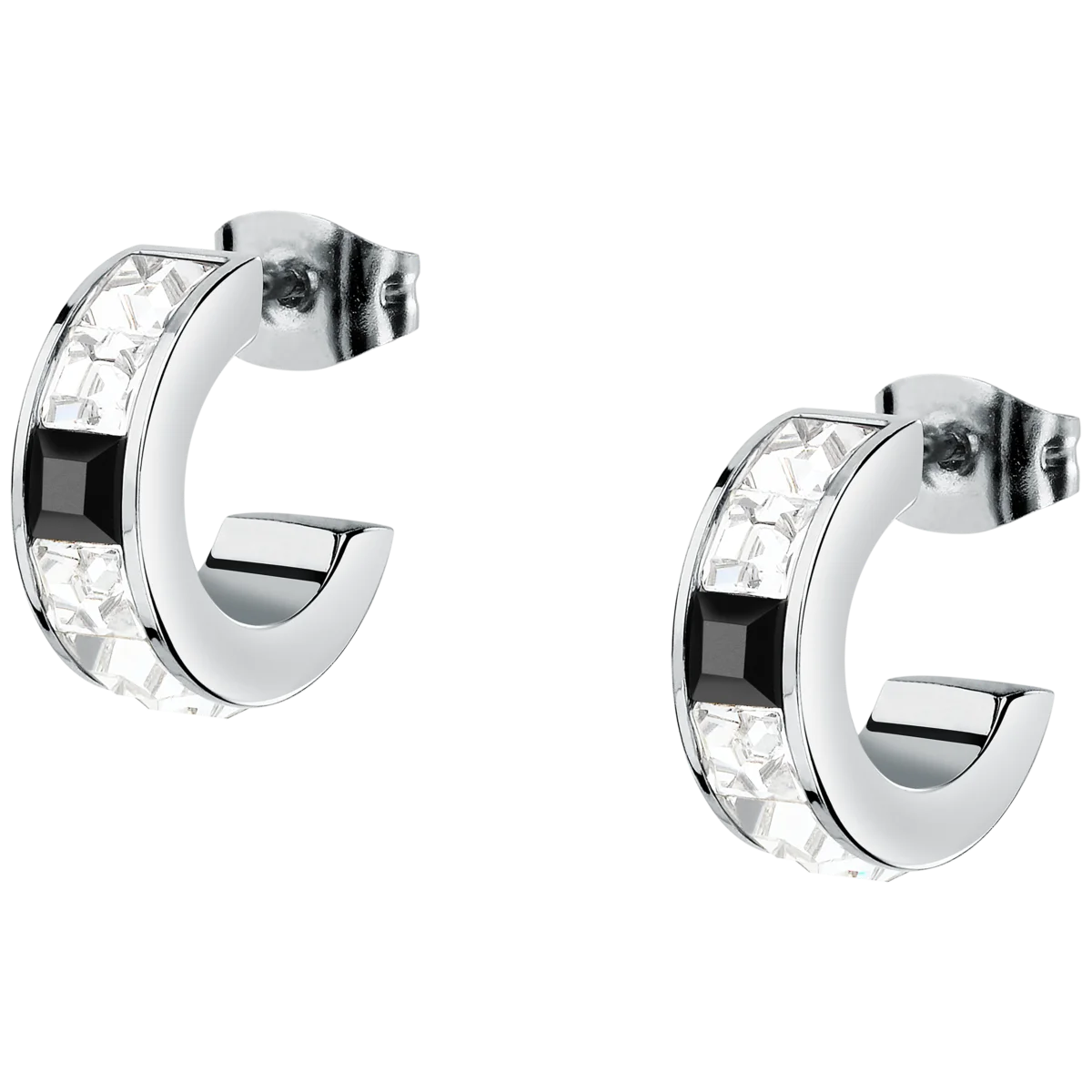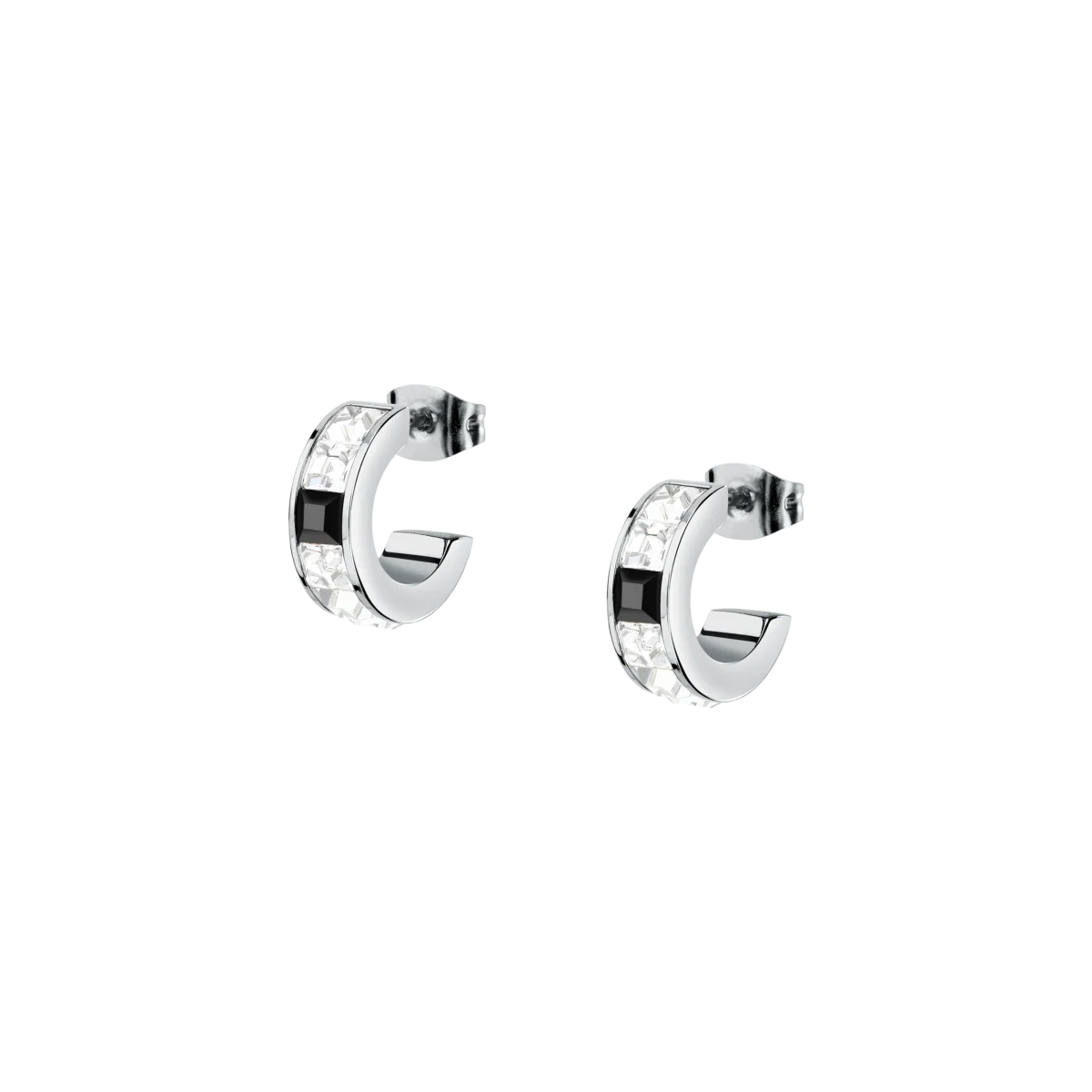 Дамски обеци халки Karl Lagerfeld Crystals със сребриста стомана и бели и черни кристали – модел KLAYC38
