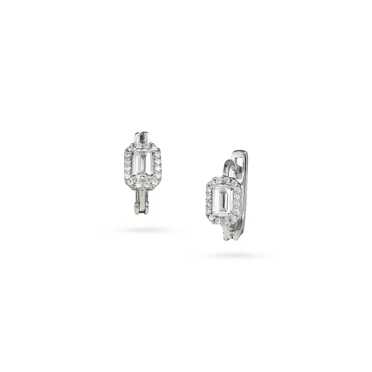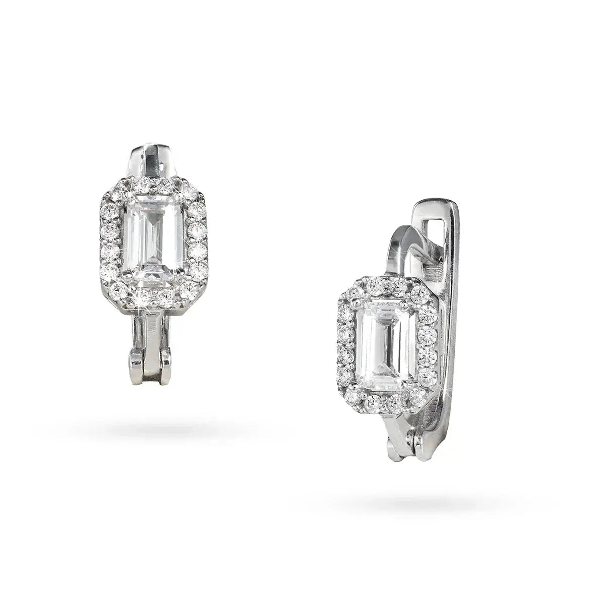Γυναικεία σκουλαρίκια από λευκό χρυσό με ορθογώνιο ζιρκόν και αγγλικό κούμπωμα | Senso Gold