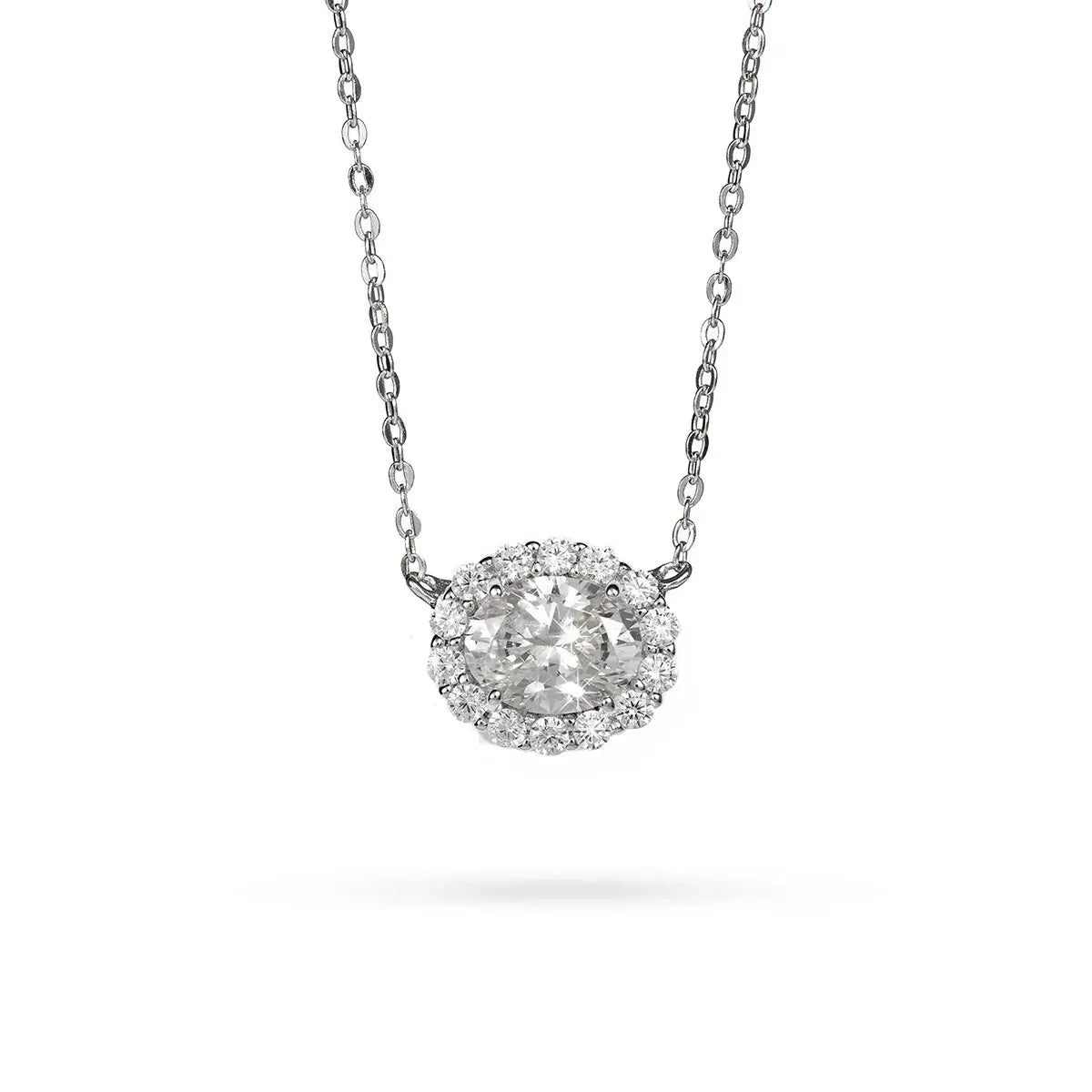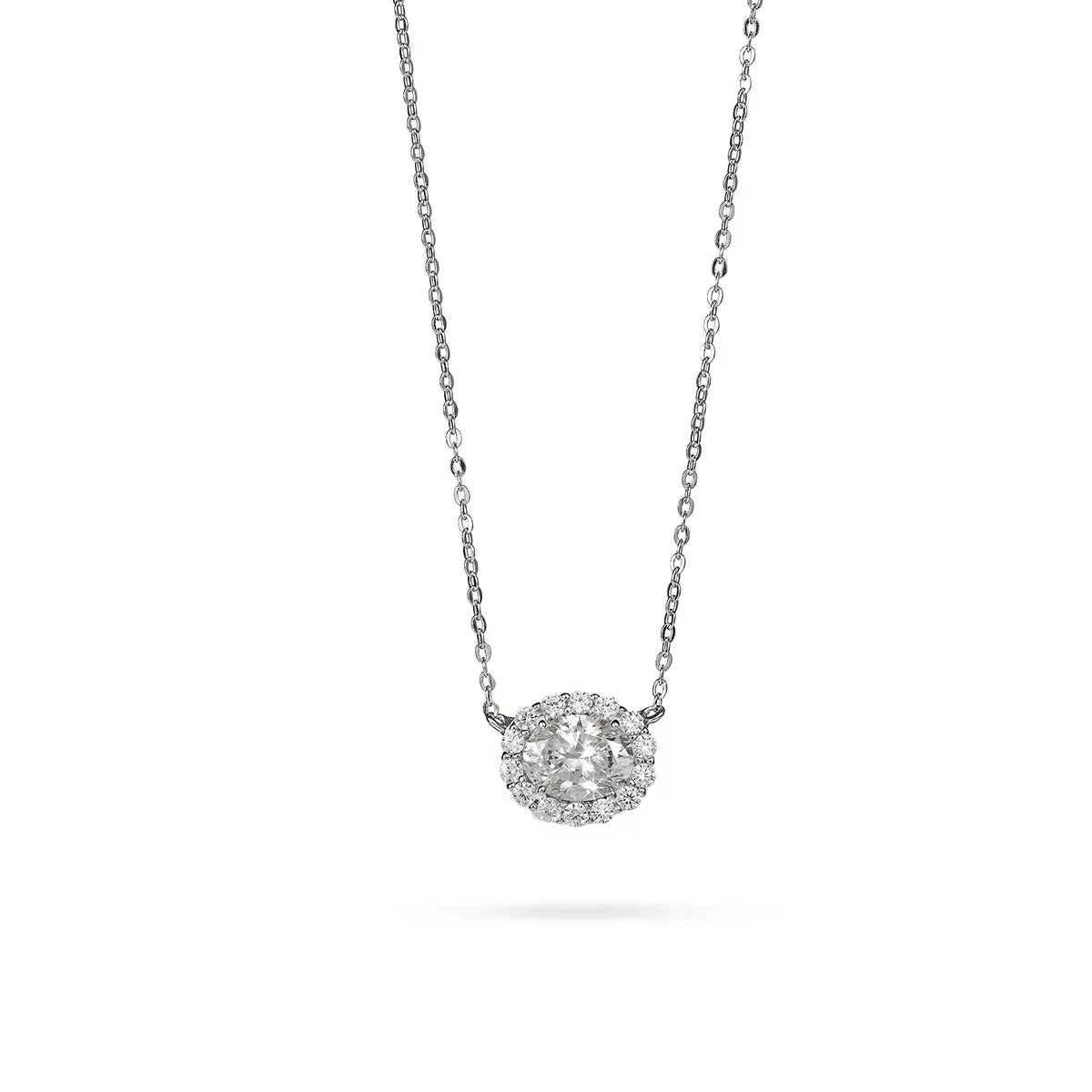 Колие от сребро с родиево покритие и ореол от циркони – блясък за всяка визия
