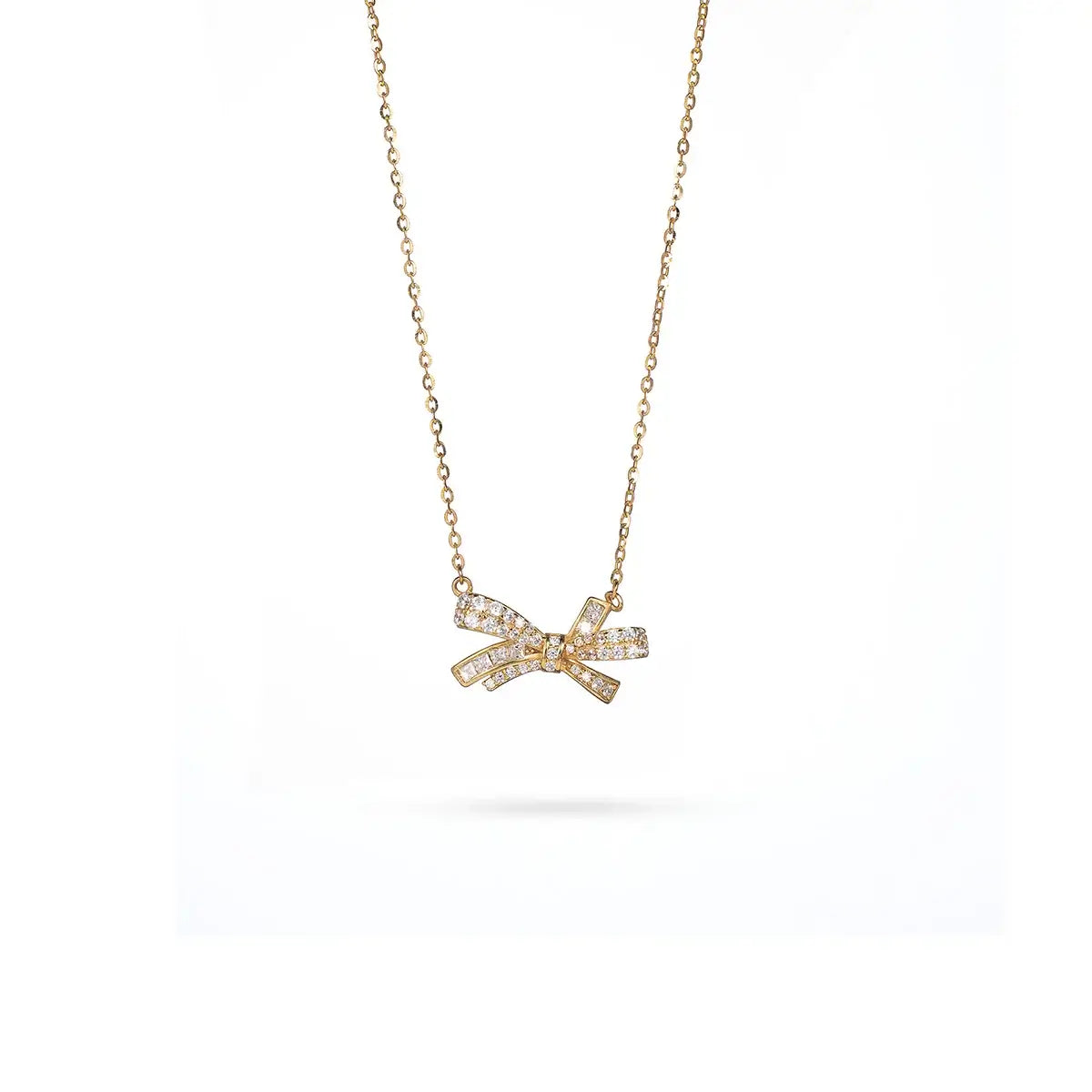 Προσθέστε μια κομψή λάμψη στην εμφάνισή σας με το στυλάτο ασημένιο κολιέ με φιόγκο, καλυμμένο με χρυσή επίστρωση και διακοσμημένο με λεπτούς ζιργκόν. Το μενταγιόν έχει μια απαλή, ασύμμετρη μορφή φιόγκου, που συμβολίζει τη θηλυκότητα και τη χαρά. Κατασκευασμένο από προσεκτικά γυαλισμένο ασήμι και ολοκληρωμένο με ζεστή χρυσή επίστρωση, αυτό το κόσμημα είναι ταυτόχρονα εκλεπτυσμένο και παιχνιδιάρικο.