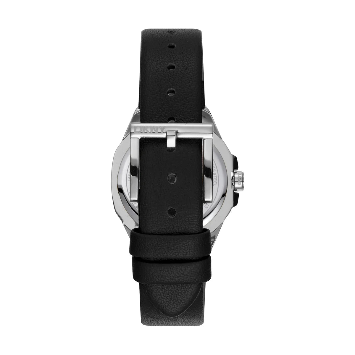 Гръб на дамски часовник DKNY Brooklyn Mini – черна кожена каишка с класическа тока, часовник DKNY модел DK1L013L0015