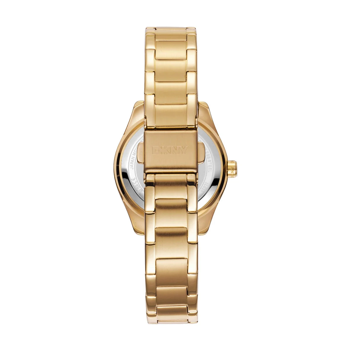 Elegant women's watch DKNY from the Chambers Sport line – a golden silhouette that brings New York chic every day. The compact 30 mm case and the clean champagne dial with three hands emphasize a modern, sophisticated look.