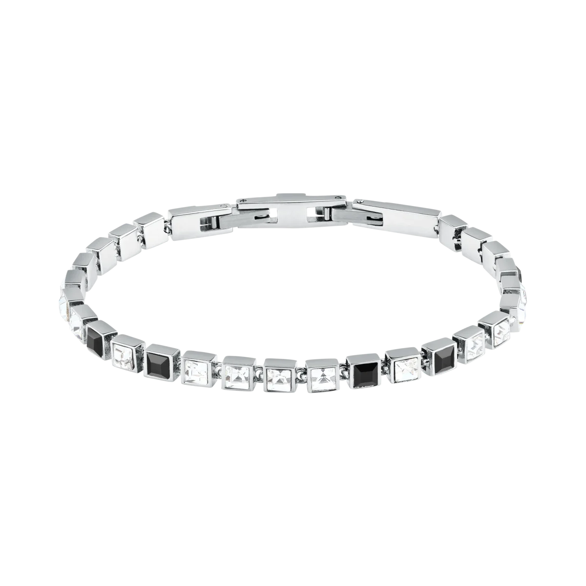 Тази дамска тенис гривна Karl Lagerfeld Crystals комбинира минимализъм и силен градски характер. Квадратните черни и прозрачни бели кристали са подредени в изящна линия, която подчертава китката с фин, но отчетлив блясък.