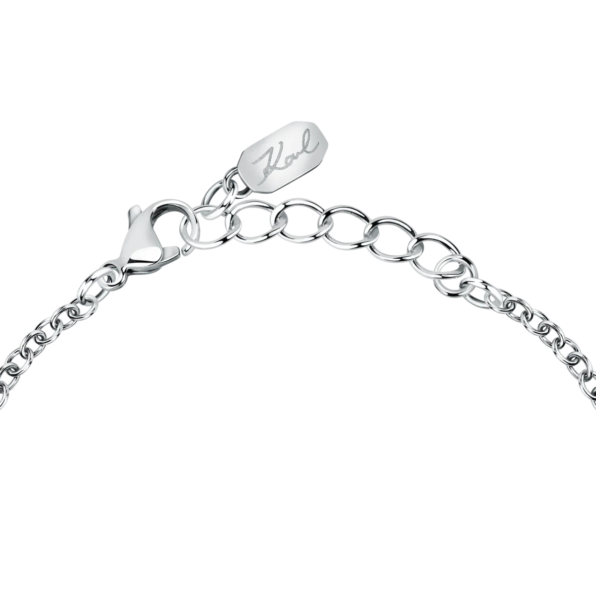 - Закопчаване: карабинка с удължителна верижка и плочка с логото Karl.