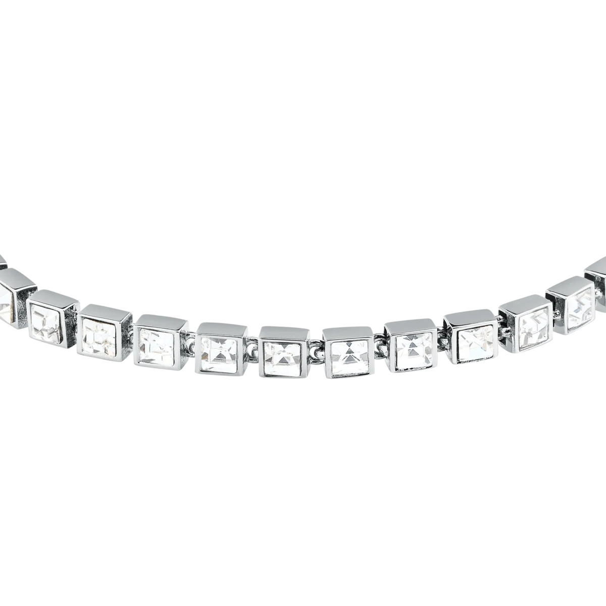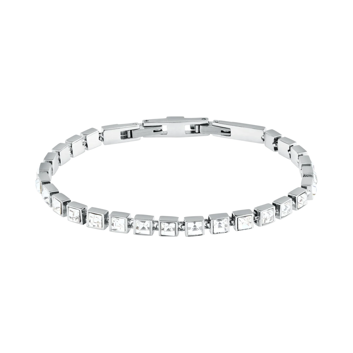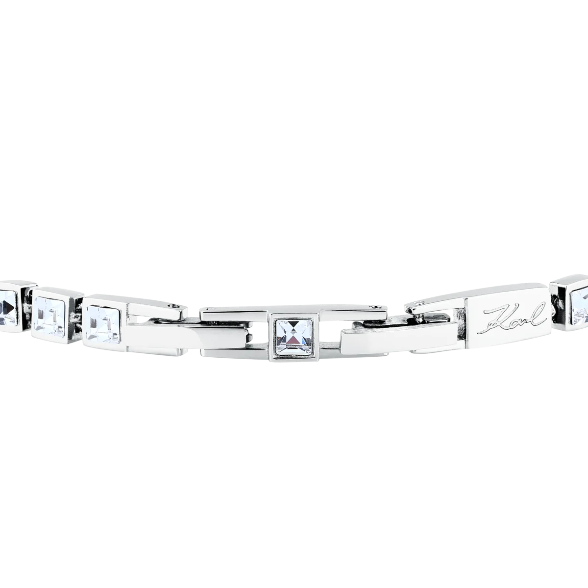 Дамската гривна Karl Lagerfeld Crystals KLAYC28 е класическа тенис гривна, която обгръща китката с непрекъснат ред от блясък. Всяко звено е инкрустирано с квадратен бял кристал, така че светлината да се отразява от всички страни и да създава елегантен „леден“ ефект.