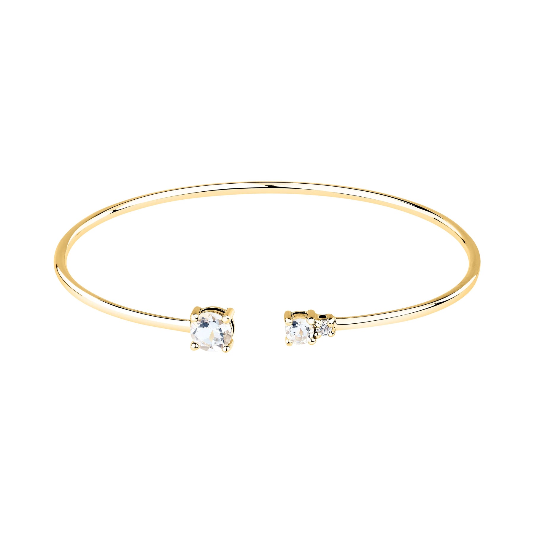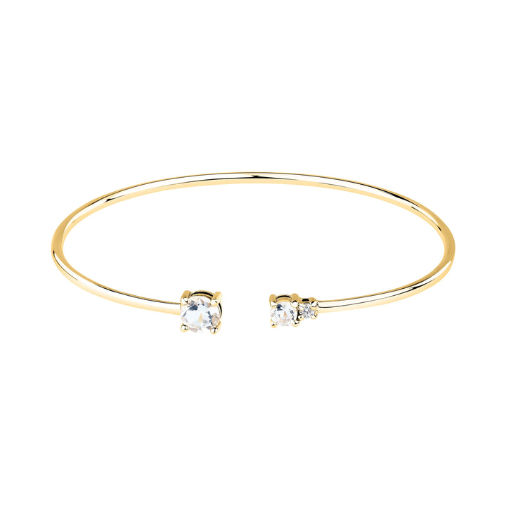 The elegant women's rigid bracelet made of 925 silver is decorated with two delicate zircons set in a mount with gold plating. The minimalist design and open style of the bracelet make it the ideal choice for a modern and sophisticated look. It pairs perfectly with both everyday outfits and special events, adding a touch of luxury and style.
