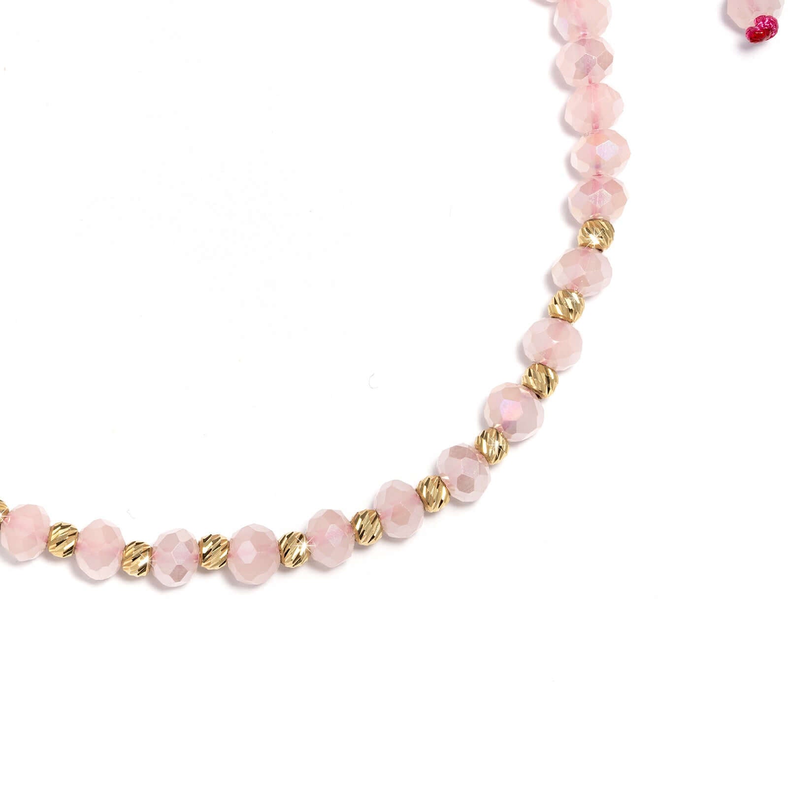 Гривна с розов конец с мъниста и златни топчета Senso Gold