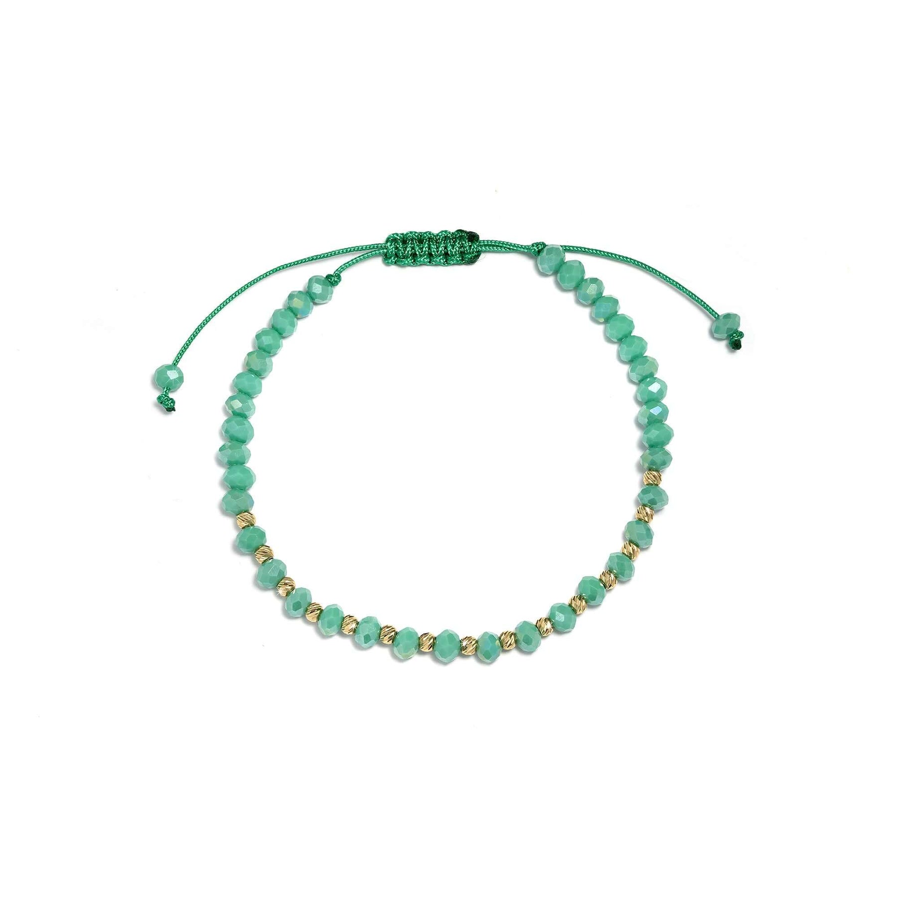 Тази гривна Senso Gold съчетава 14K злато и зелен конец. Зеленият конец символизира свободата, а златните елементи добавят нежен акцент.
