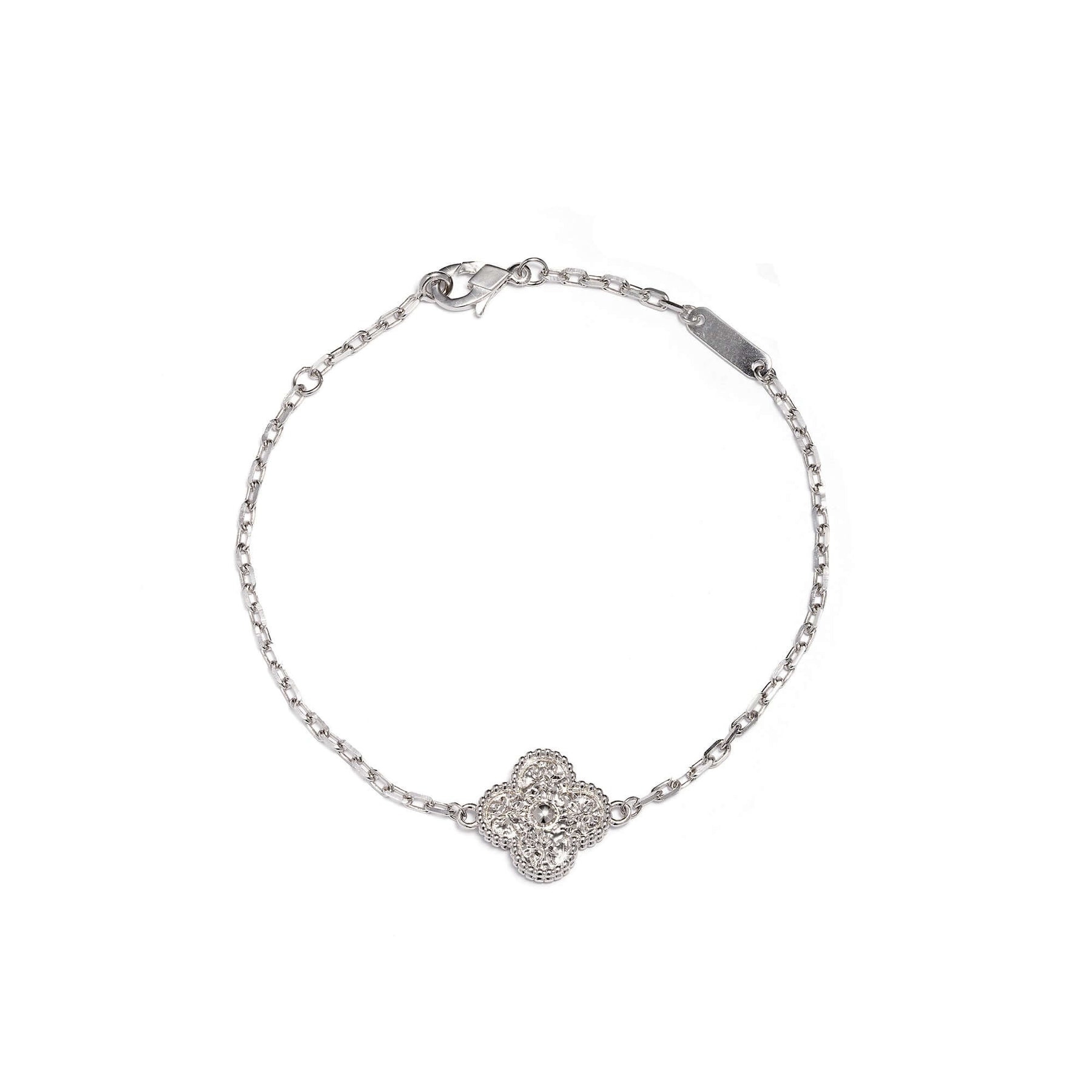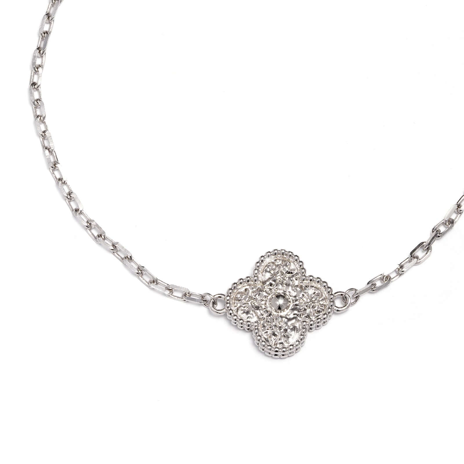 Дамска сребърна гривна с родиево покритие и детелина. Senso Silver