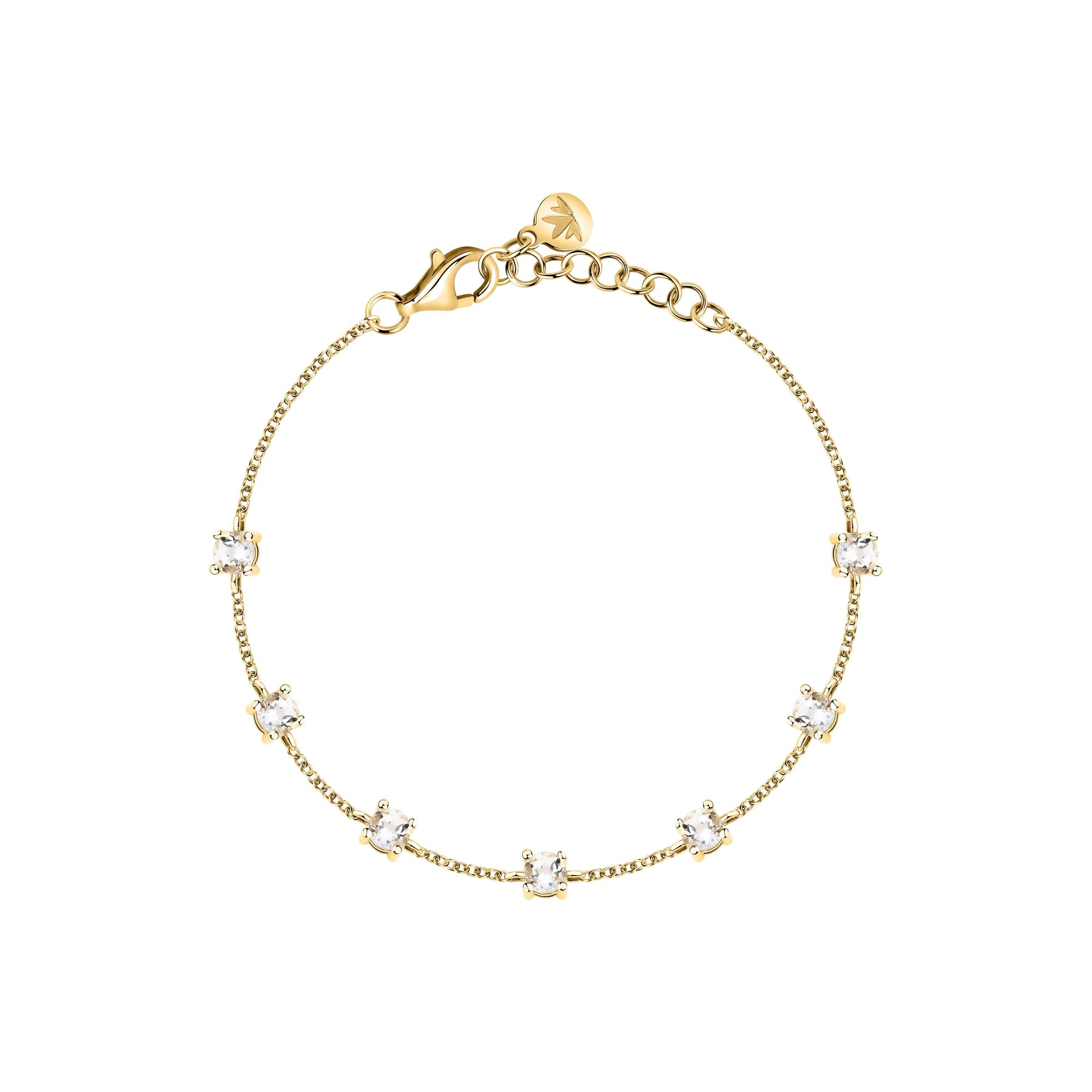 Нежна дамска гривна от колекцията Morellato Tesori, изработена от сребро 925 със златно покритие. С инкрустирани циркони по дължината на синджира, тази гривна придобива изтънчен и нежен вид.