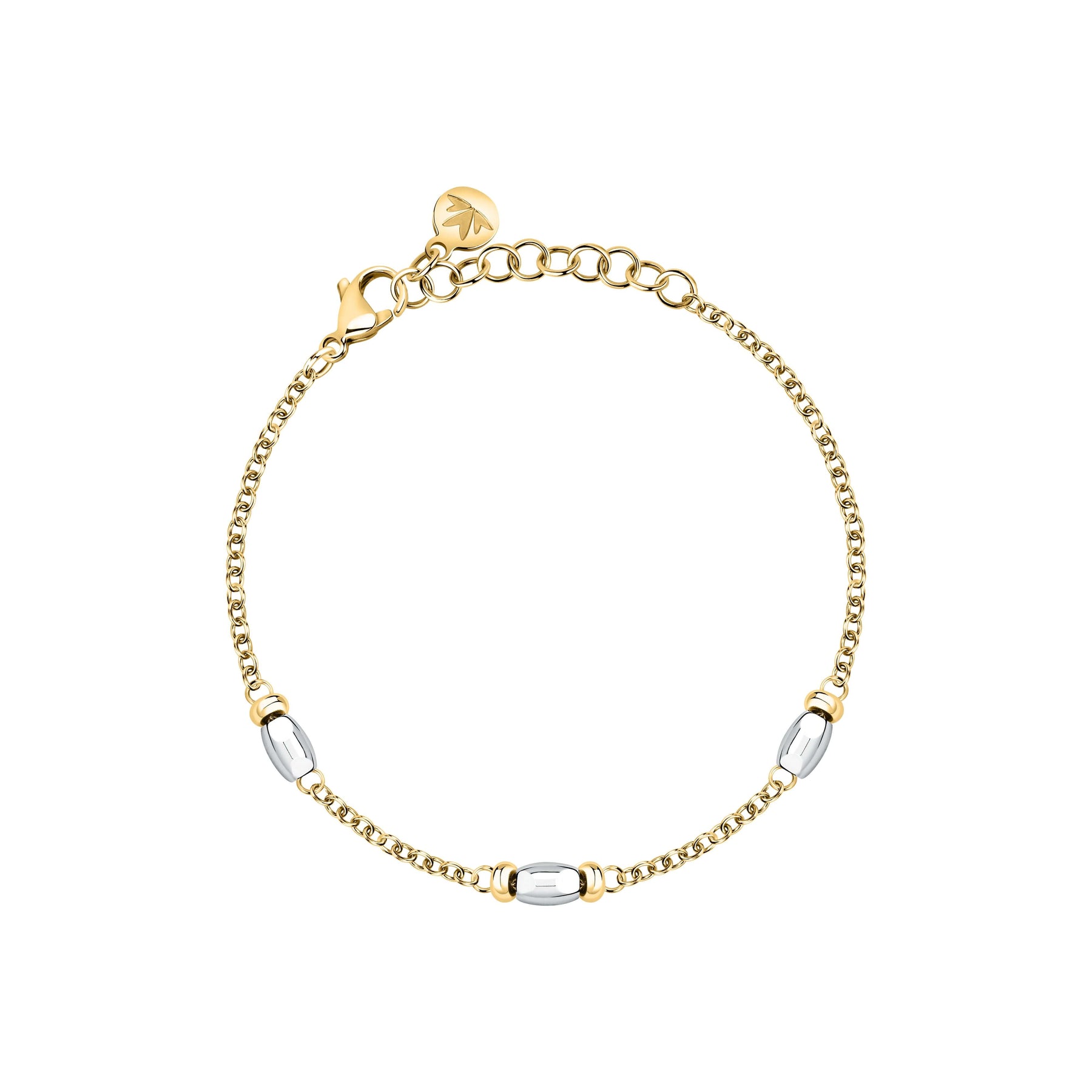 Стилна дамска гривна от стомана. Декорирана със златисти цилиндрични елементи. Morellato SAXQ18. Размер 16 см + 3 см.