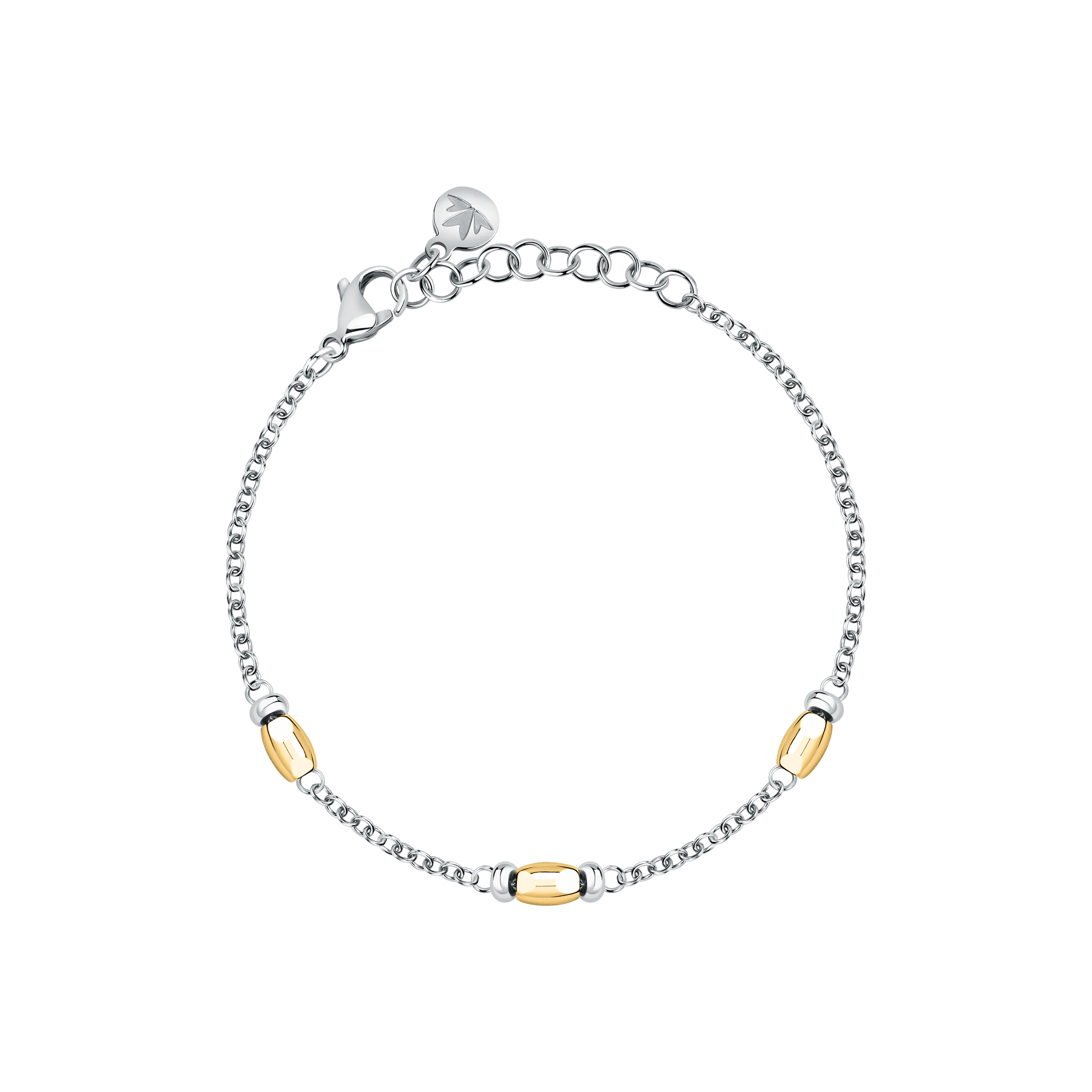Стилна дамска гривна от стомана. Декорирана със златисти цилиндрични елементи. Morellato SAXQ18. Размер 16 см + 3 см.
