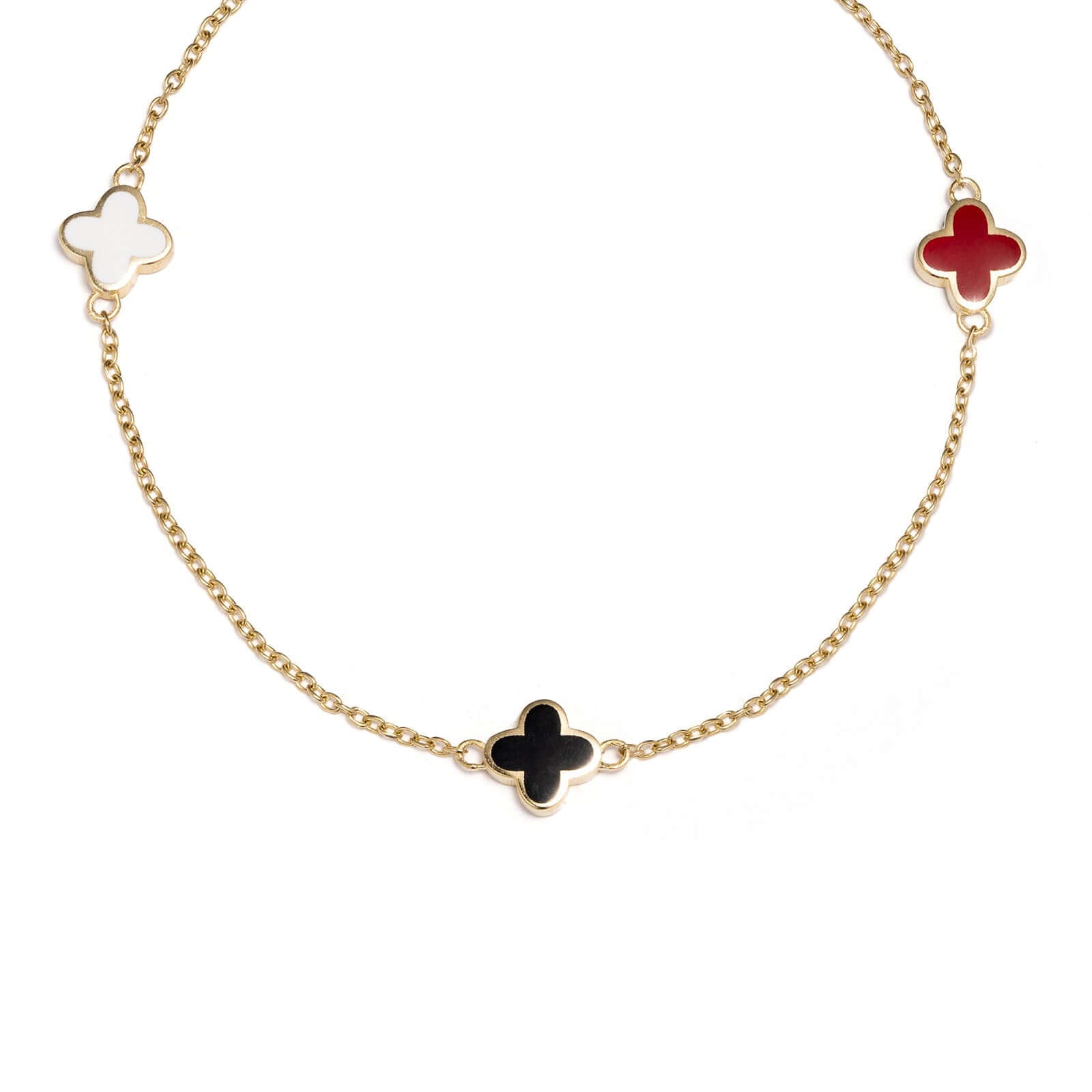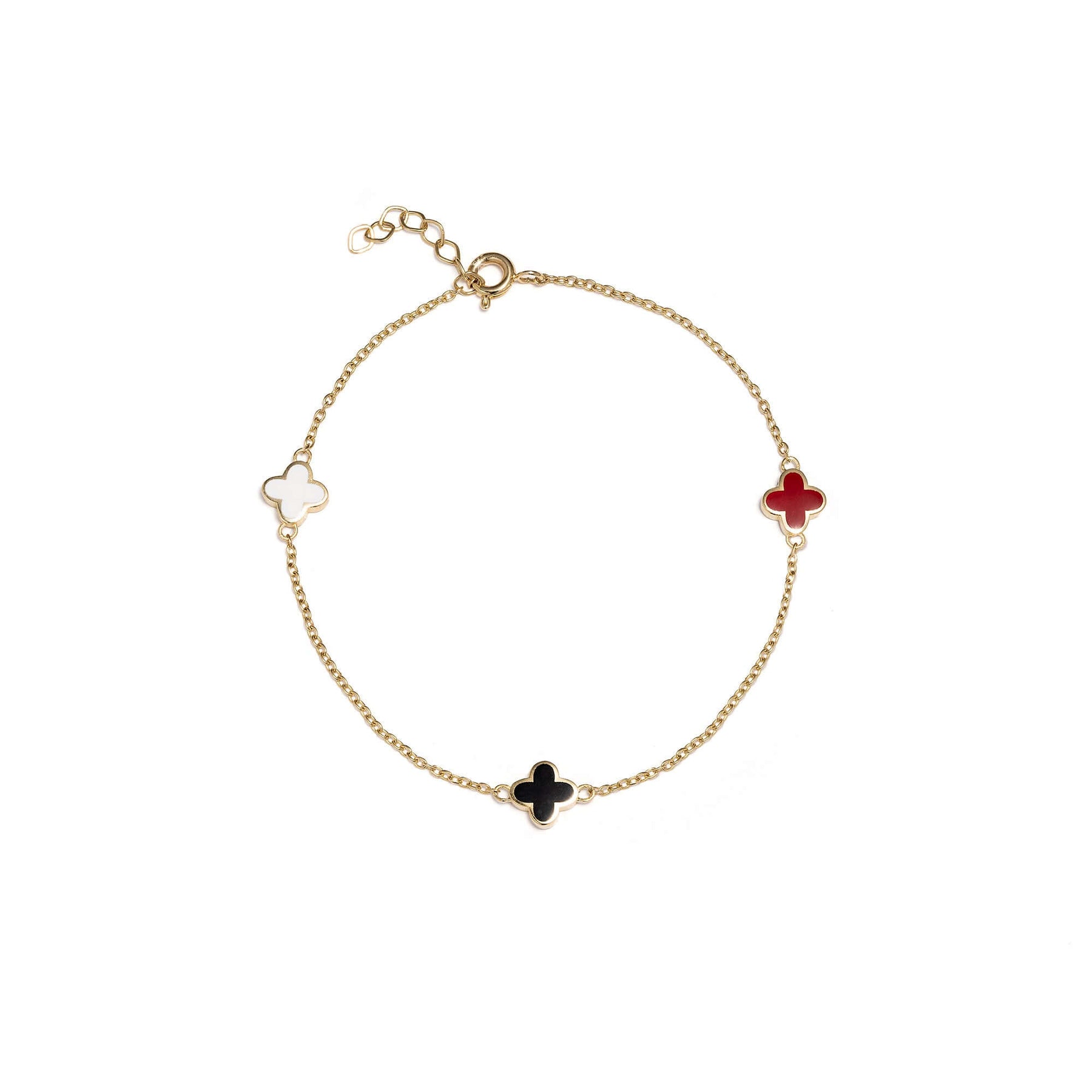 Златна дамска гривна с 3 детелини с цветен Емайл 4 мм | Senso Gold