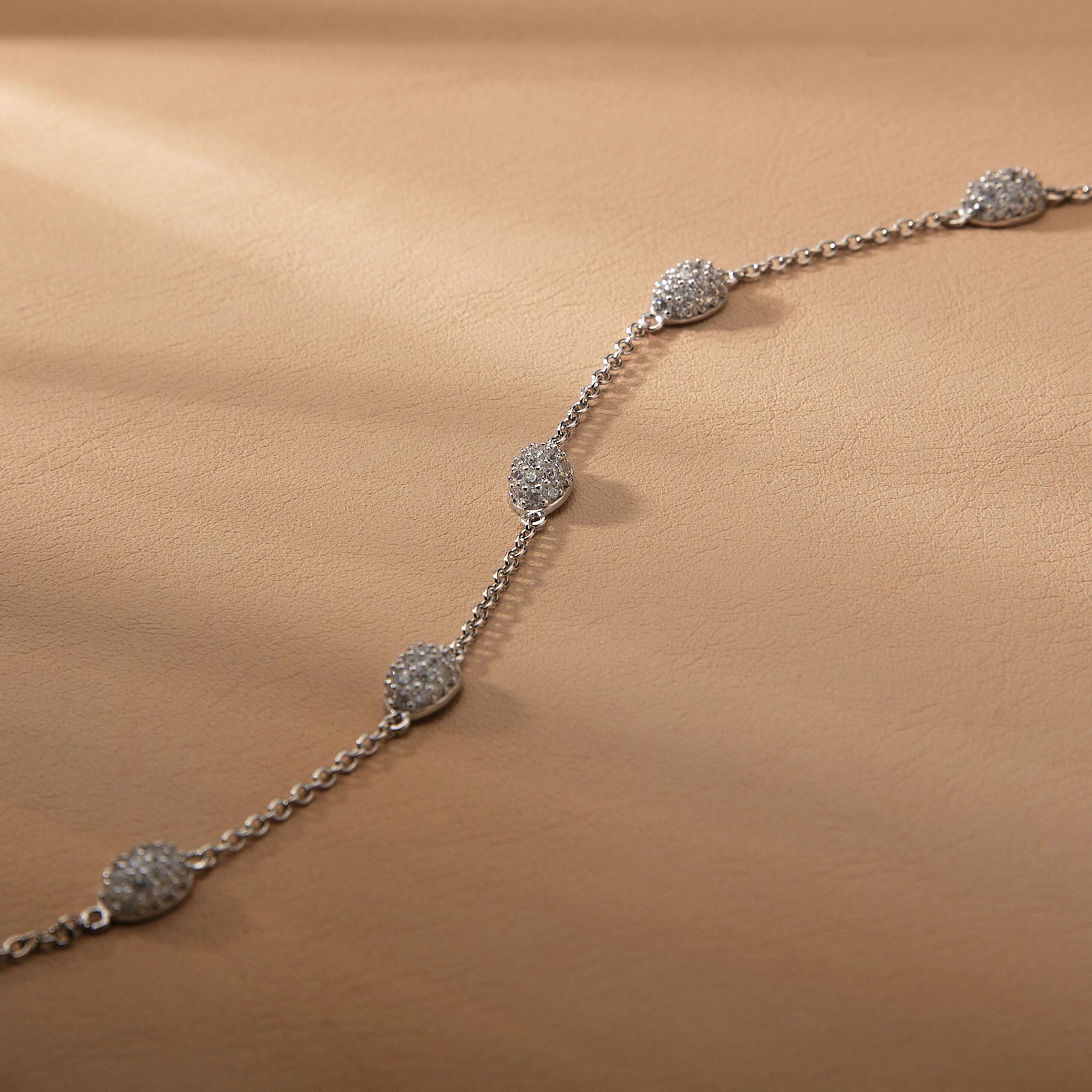 Нежна и елегантна сребърна гривна, изработена от висококачествено сребро 925. Фината верижка е украсена с пет елемента с инкрустирани циркони, разположени равномерно, за да подчертаят изяществото на всяка визия. Дискретният дизайн я прави подходяща както за ежедневието, така и за специални поводи.