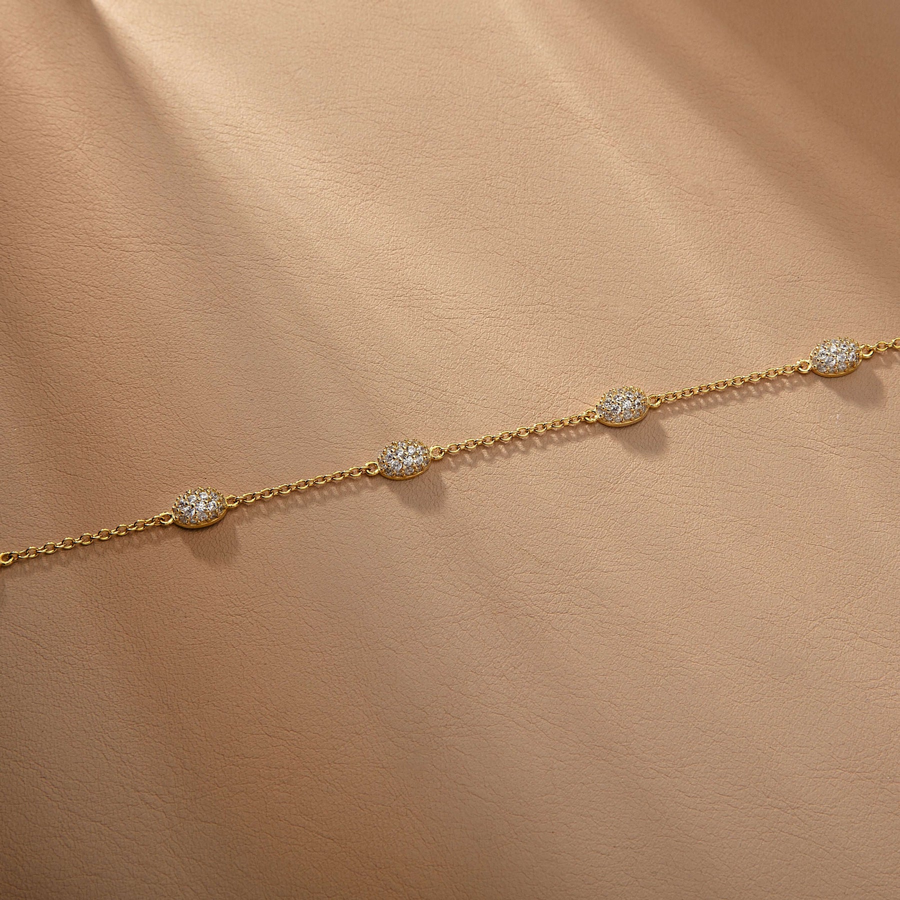 Нежна и елегантна сребърна гривна, изработена от висококачествено сребро 925. Фината верижка е украсена с пет елемента с инкрустирани циркони, разположени равномерно, за да подчертаят изяществото на всяка визия. Дискретният дизайн я прави подходяща както за ежедневието, така и за специални поводи.