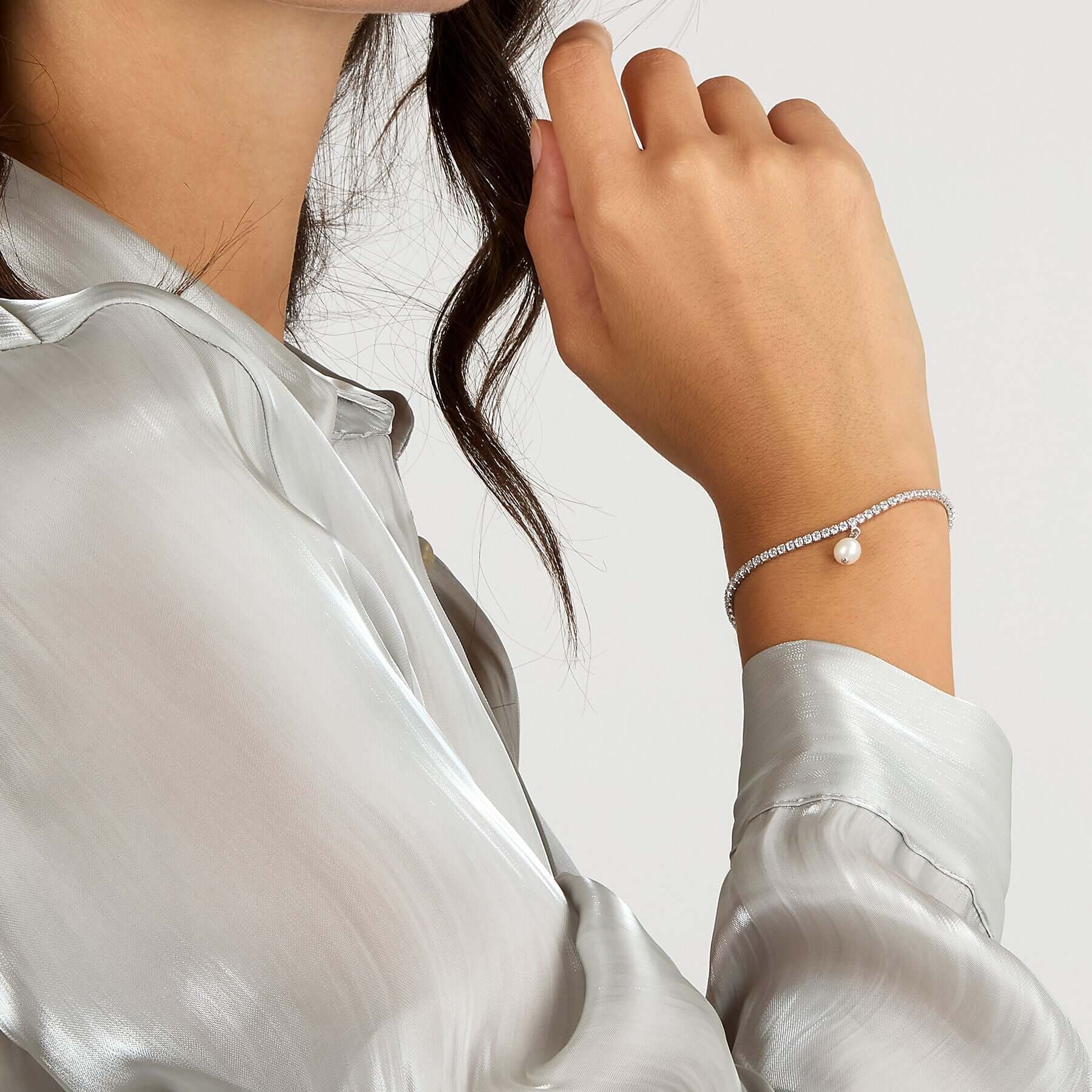 Сребърна тенис гривна с родиево покритие, циркони и перла | Morellato Perla