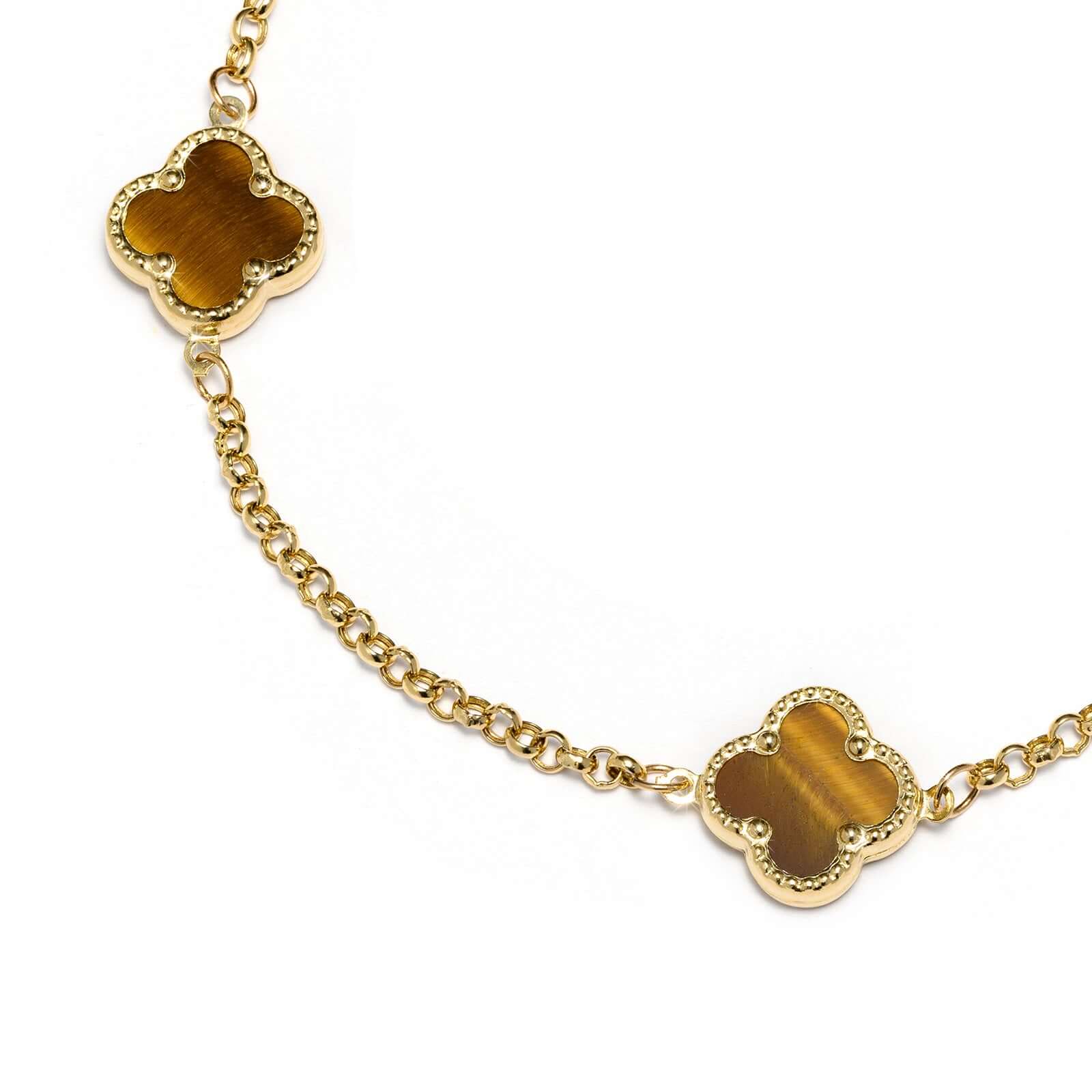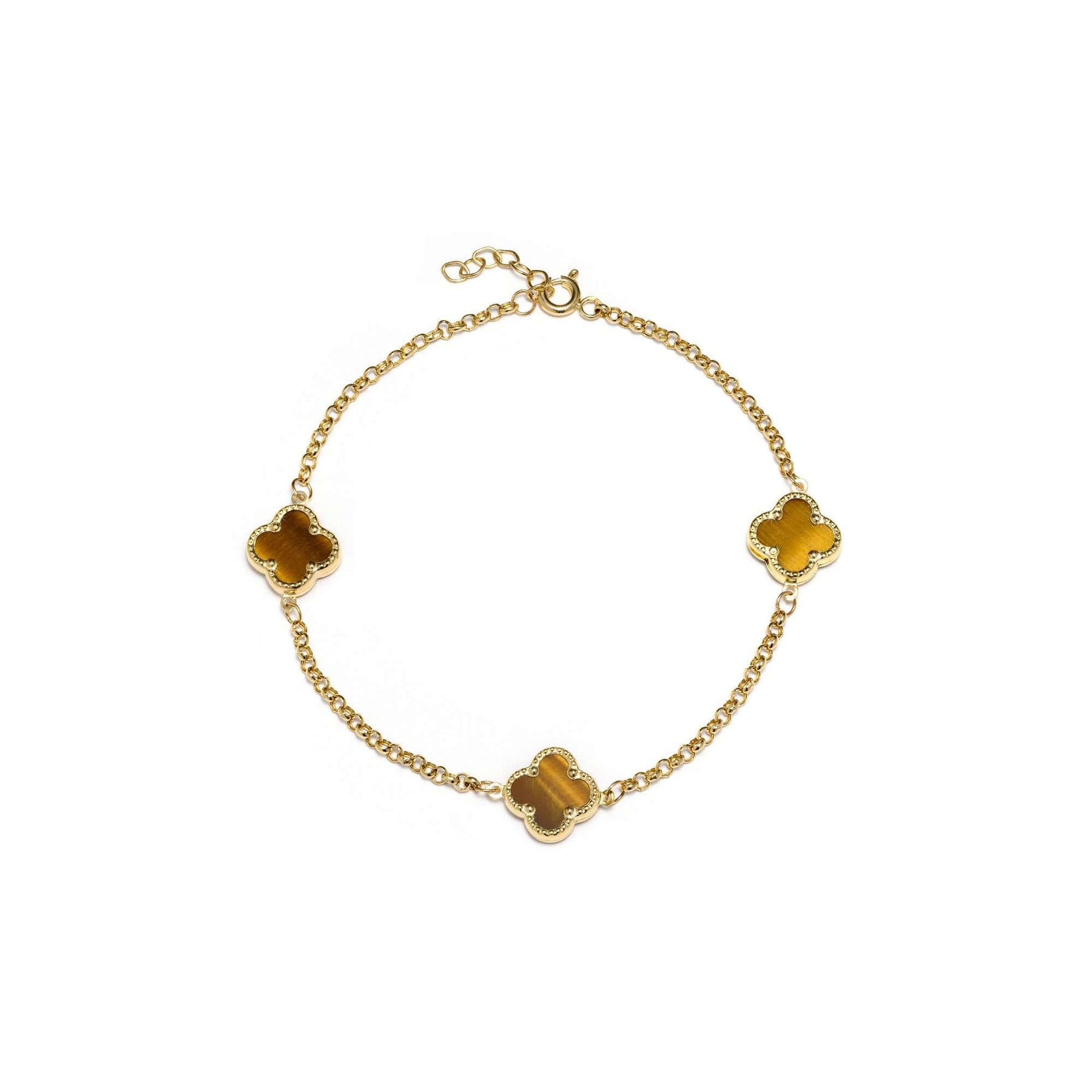 Дамска златна гривна с детелини от камък тигрово око. DB2213