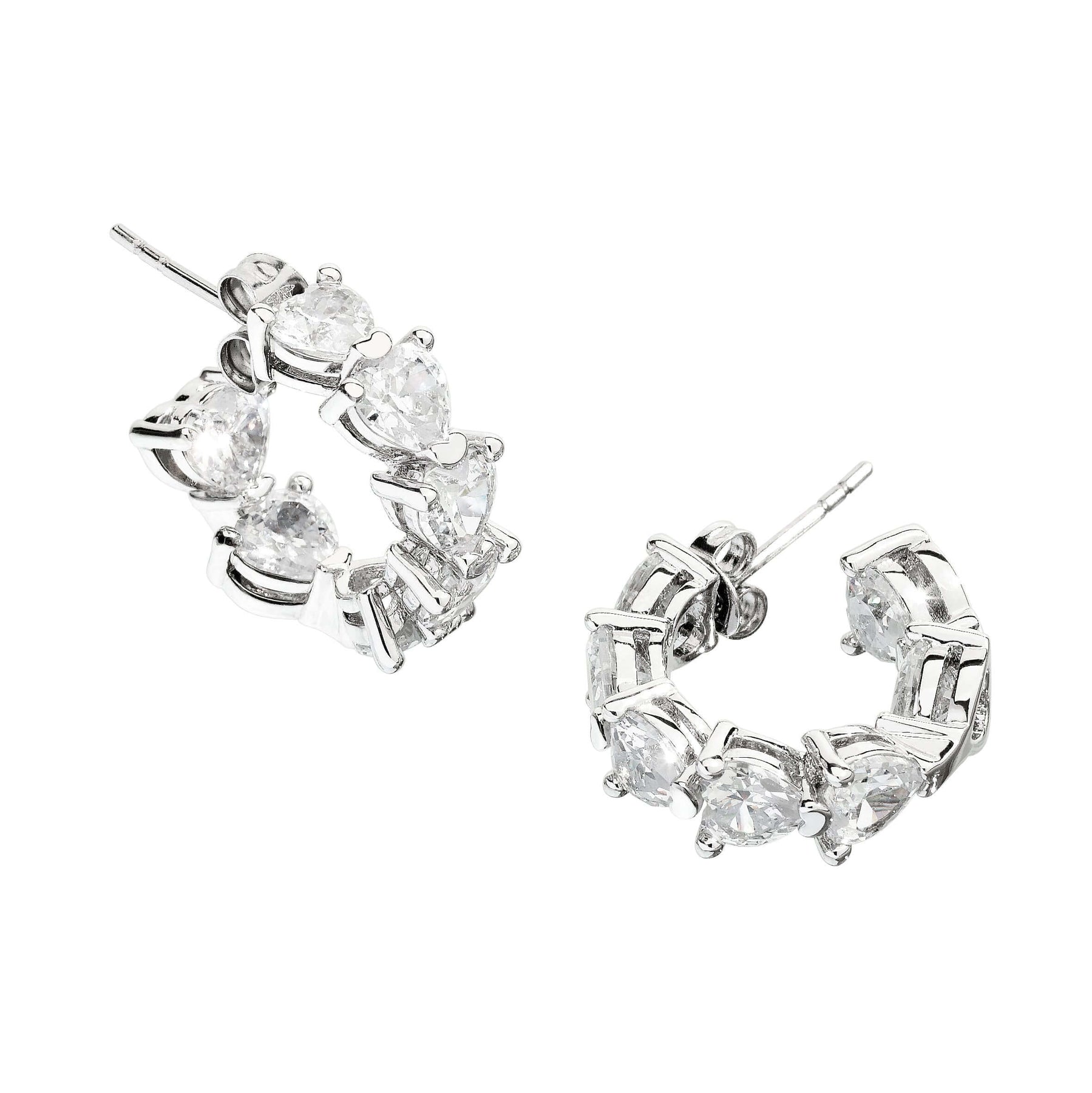 Дамски обеци халки Chiara Ferragni с родиево покритие и циркони във формата на сърцa