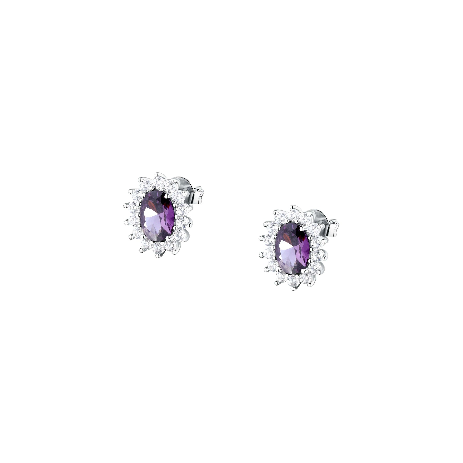 Сребърни дамски обеци с лилави циркони и фини бели циркони в обков | Morellato Tesori