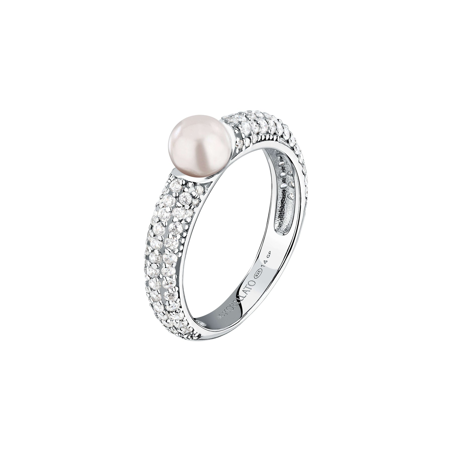 Дамски сребърен пръстен с инкрустирани циркони и перла. Morellato Perla SXU50