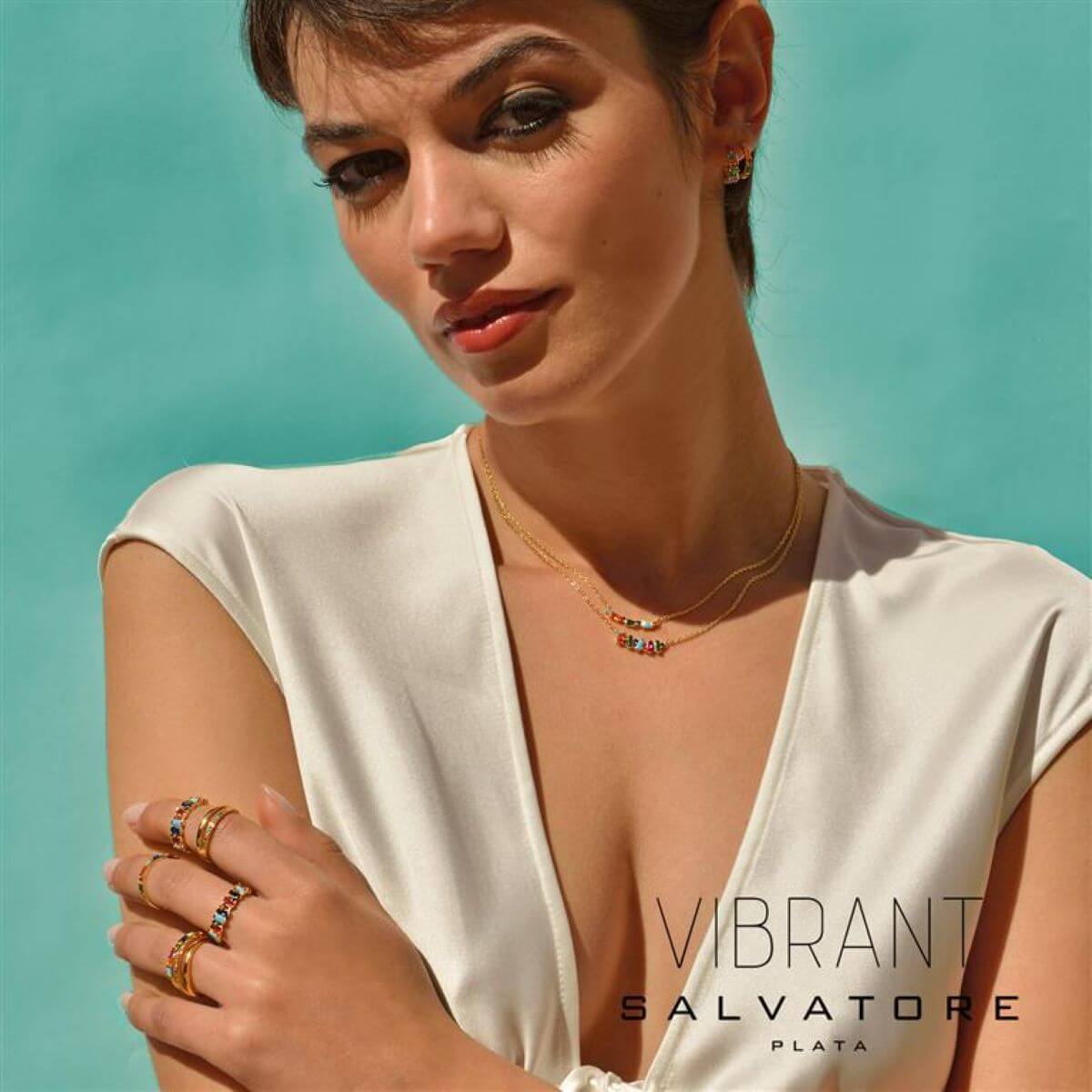 Този златен пръстен Salvatore Plata VIBRANT е идеален за дамите, които търсят баланс между класическа изтънченост и свежи, цветни детайли.