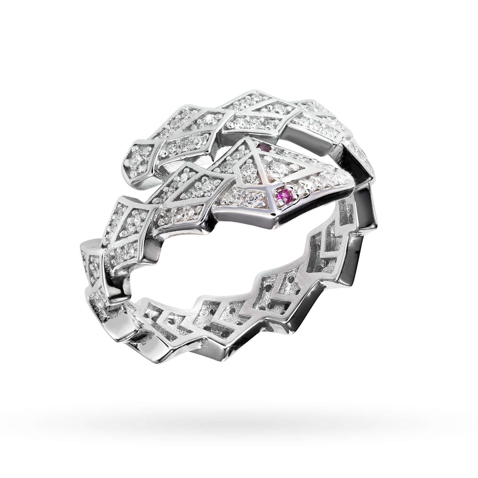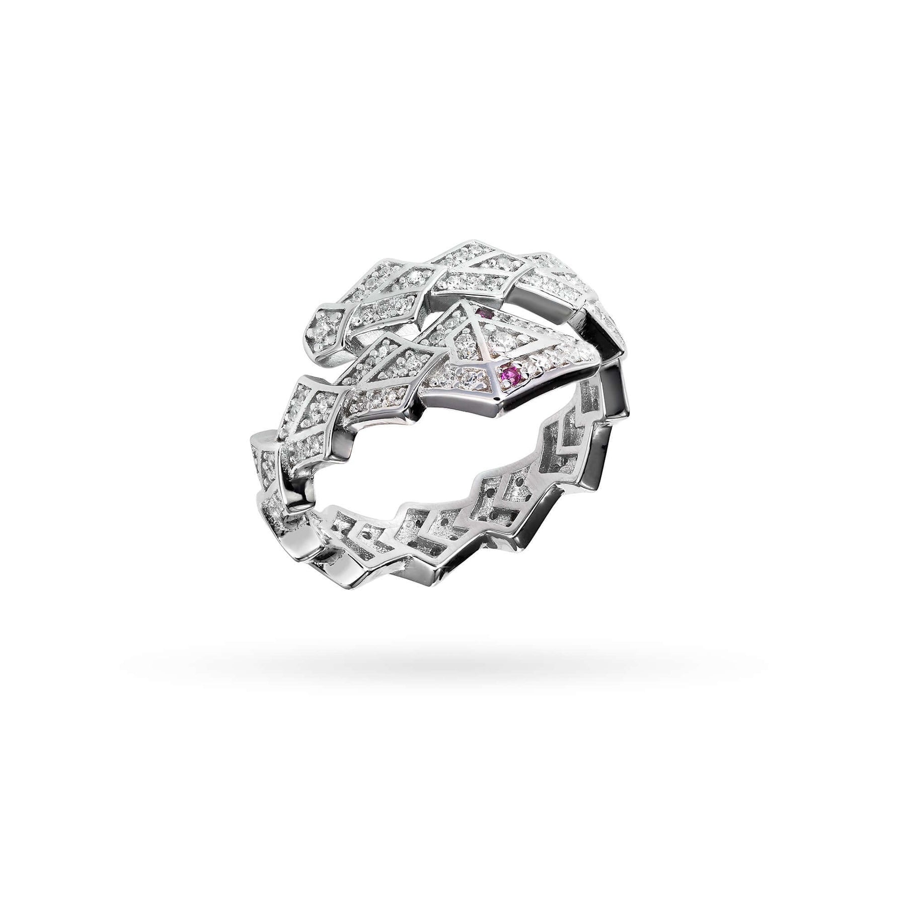 Сребърен пръстен с родиево прокритие със змийски дизайн и циркони | Senso Silver