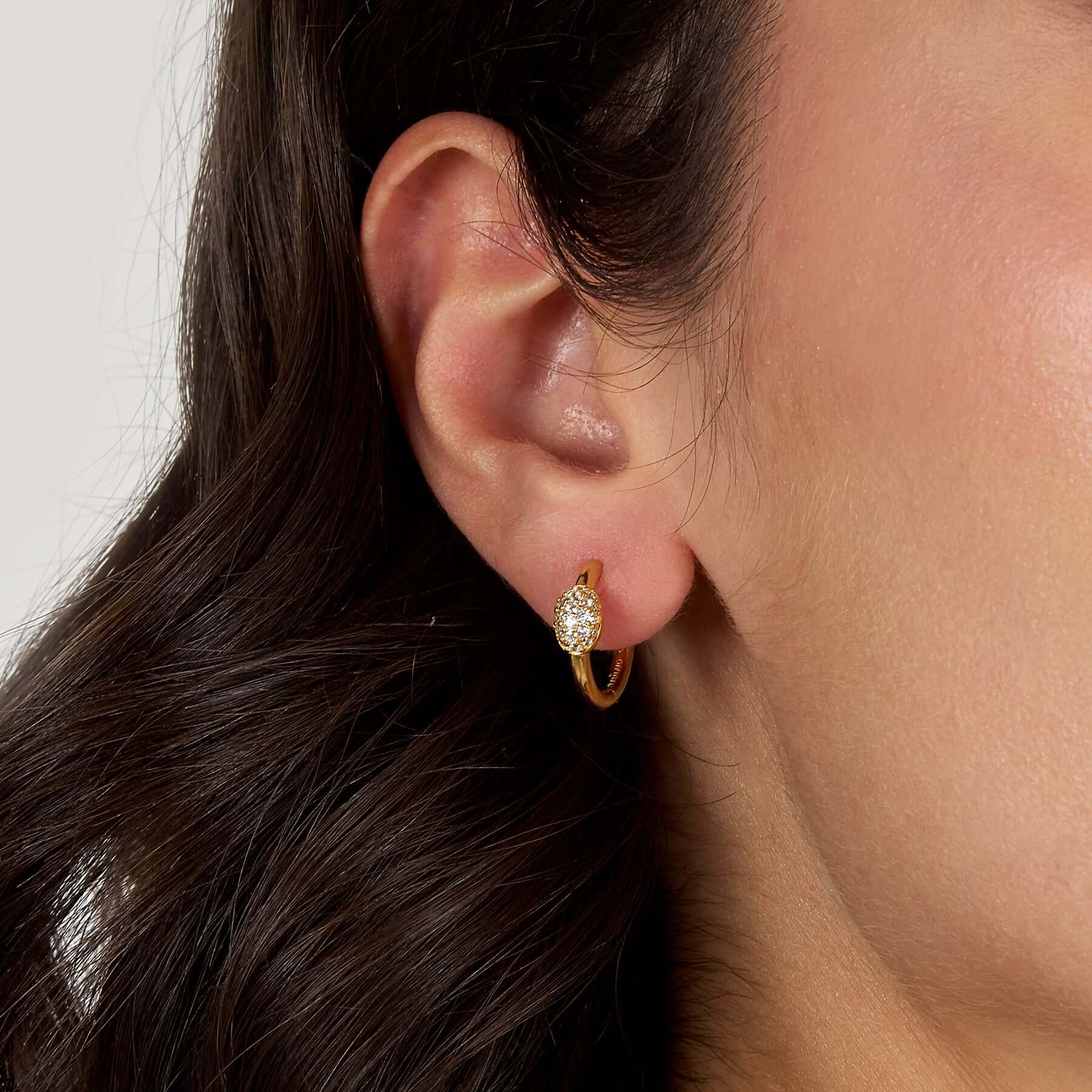 Дамски сребърни обеци халки със златно покритие и циркони - 1.6 см | Morellato Pave