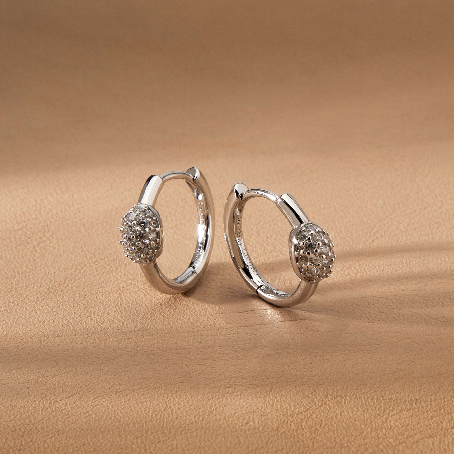 Нежни и елегантни сребърни обеци тип халки, изработени от висококачествено сребро 925. Украсени с фини бели циркони, тези обеци са перфектният аксесоар, който ще добави блясък и стил към всяка визия.