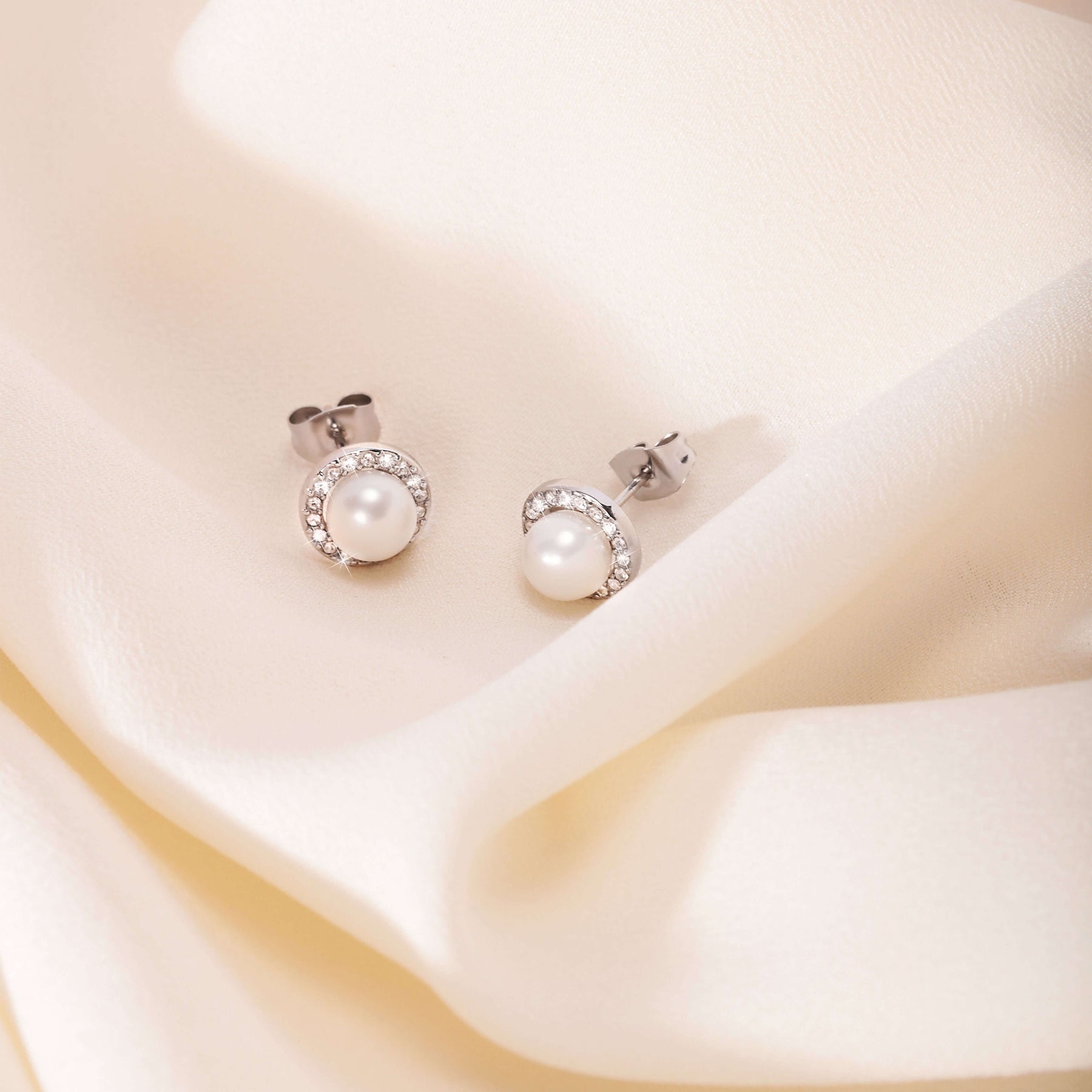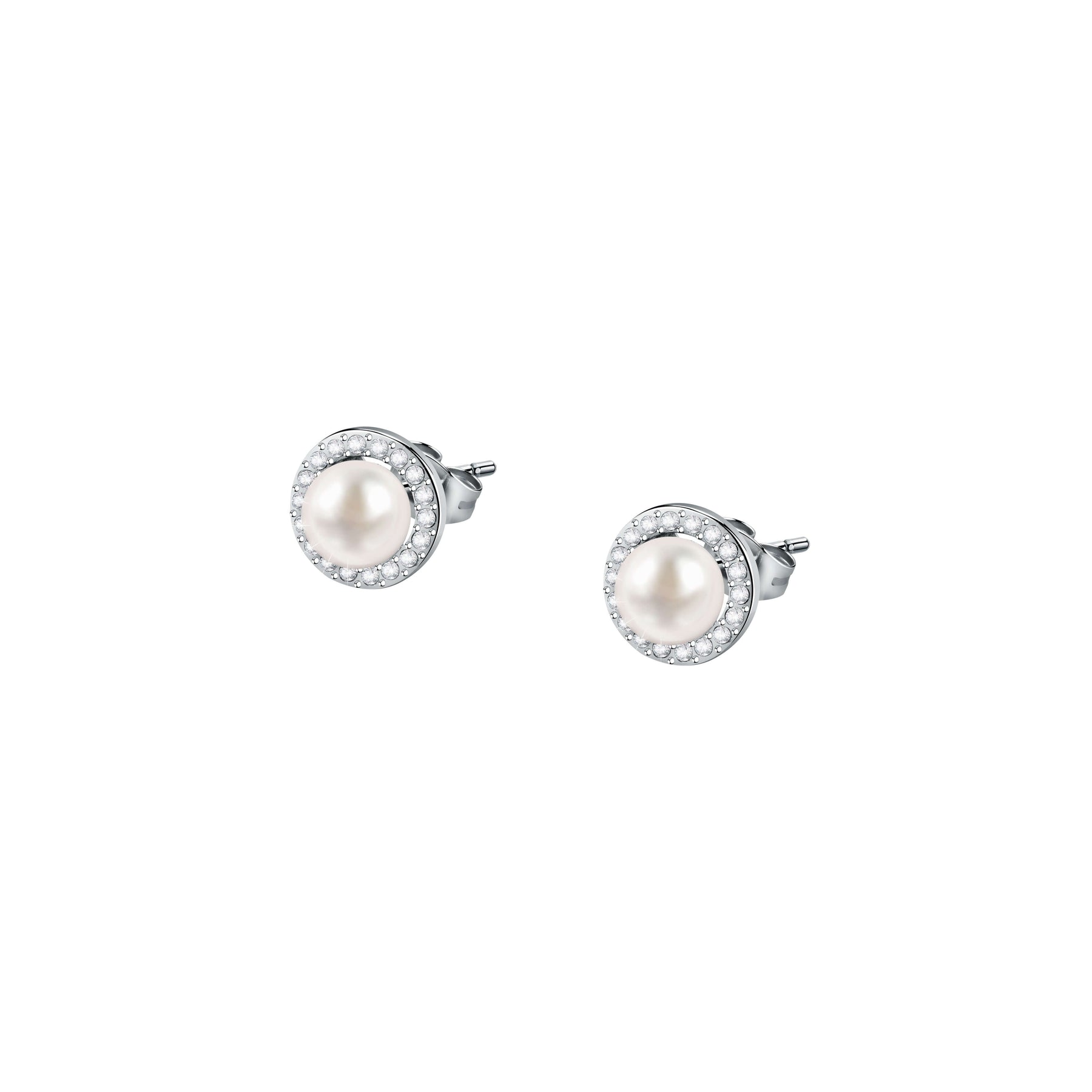 Нежни дамски сребърни обеци с култивирани перли и циркони. Morellato Perla SAER51
