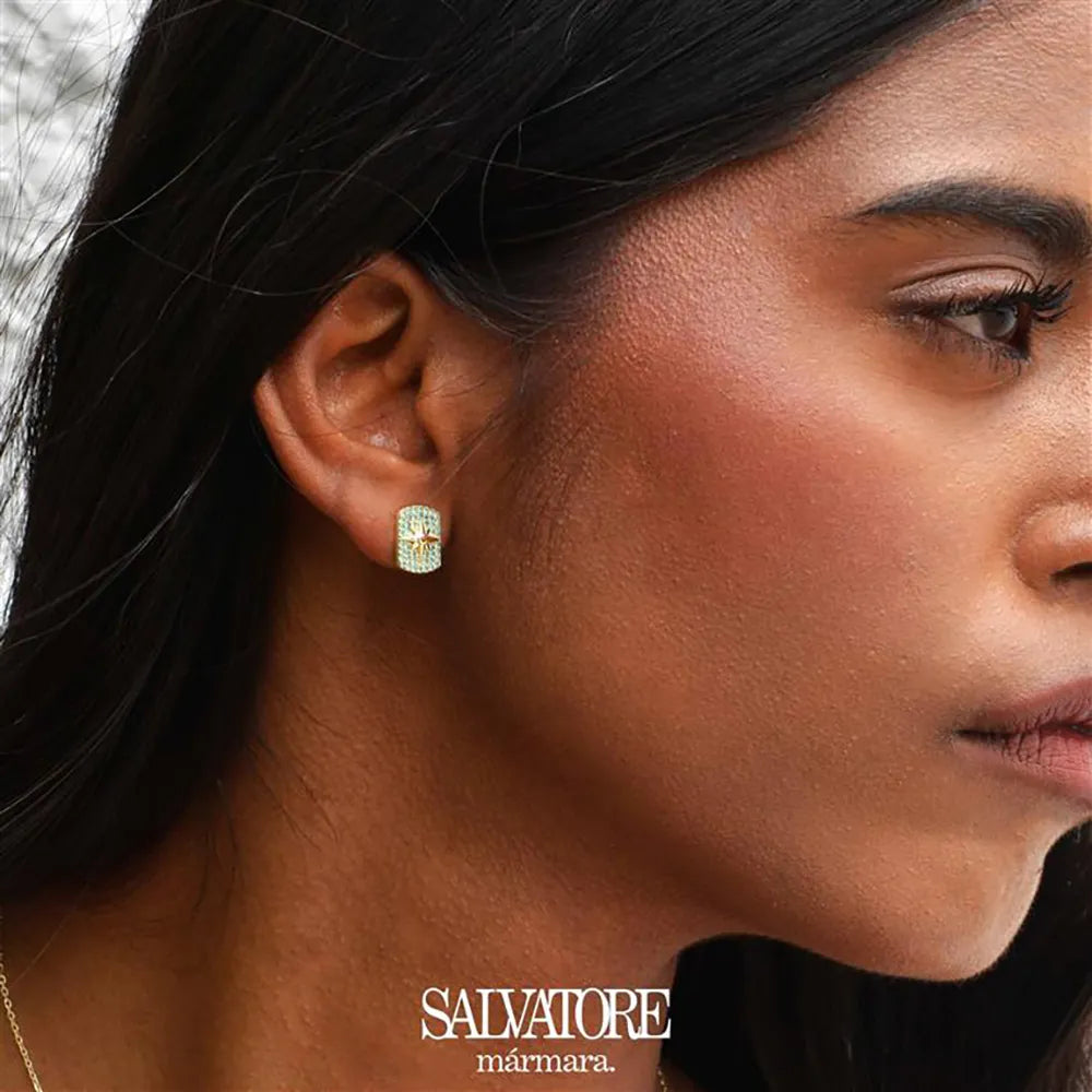Дамски сребърни обеци Salvatore Plata с позлатяване и параиба камък.