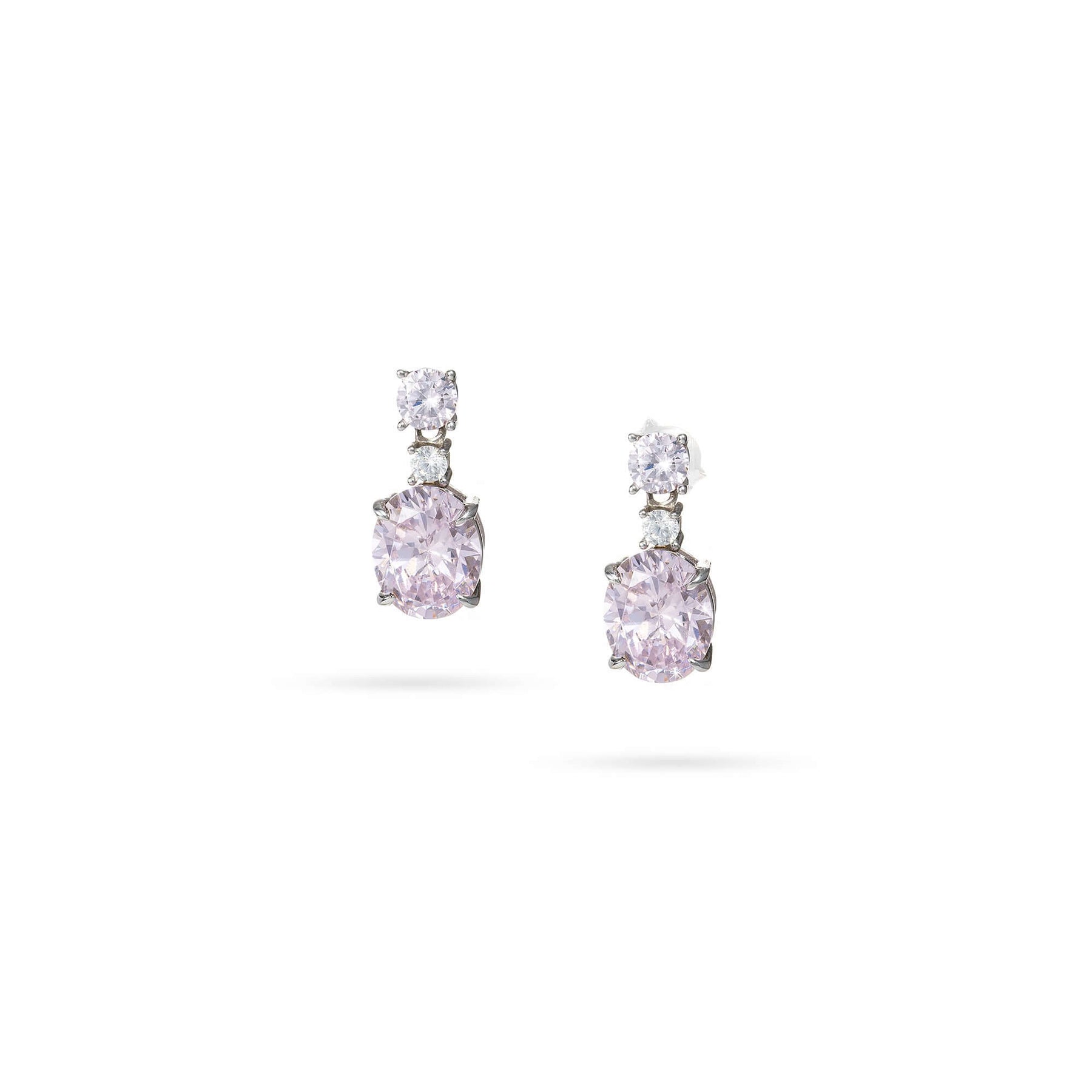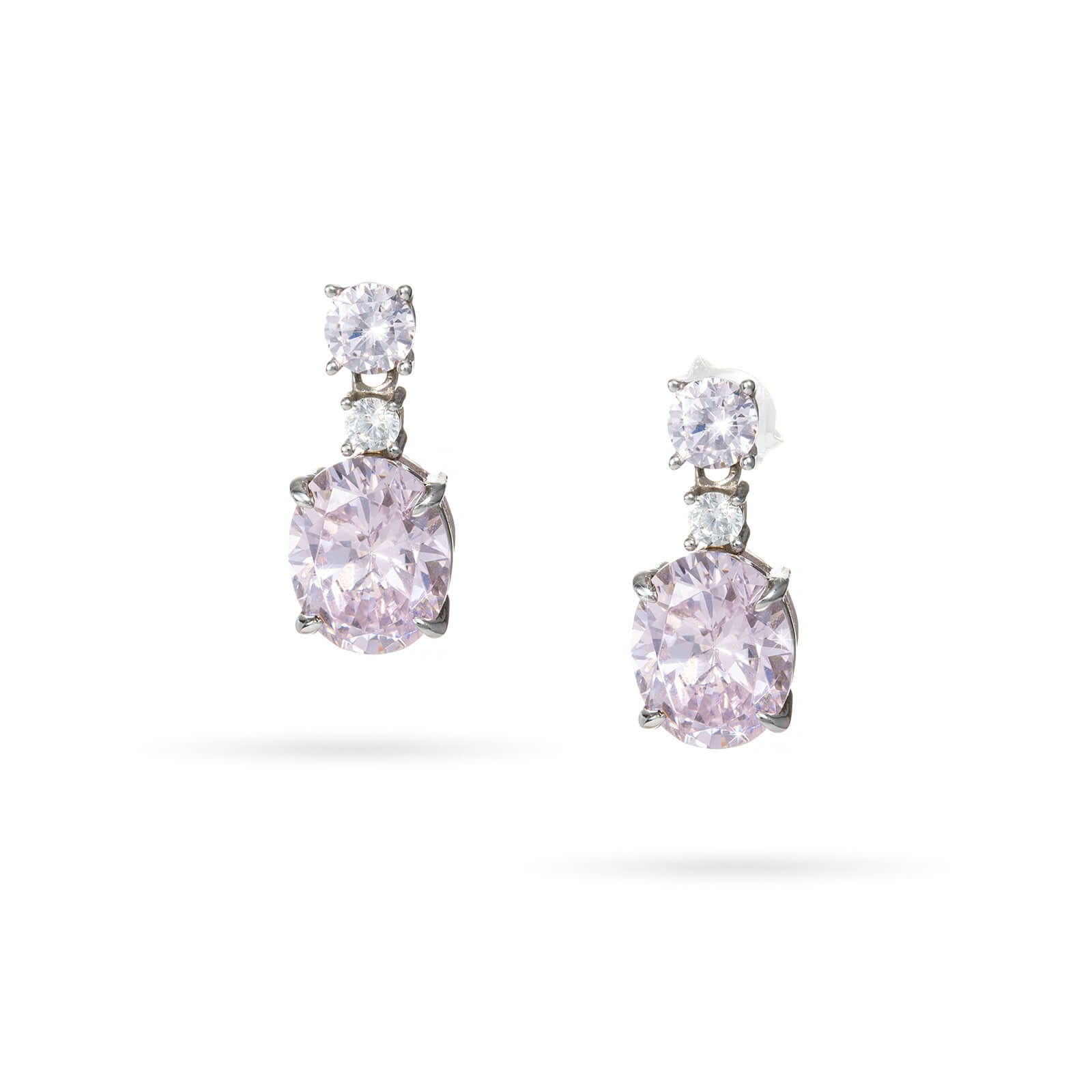 Елегантни висящи обеци Senso Silver с родиево покритие и розови циркони - 2 см