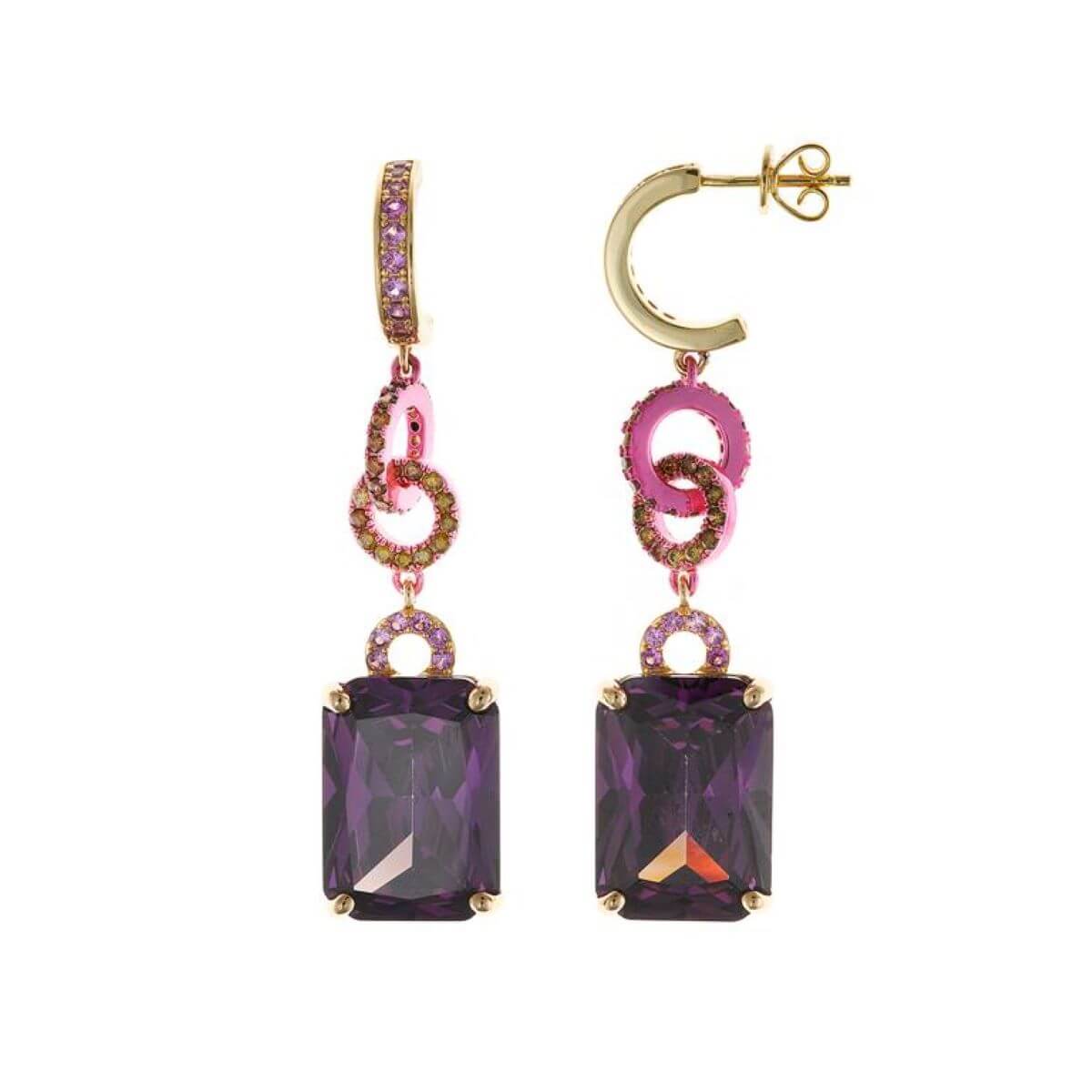 Дамски висящи обеци с лилав камък и златно PVD покритие 18K | Salvatore Plata AFTERNOON