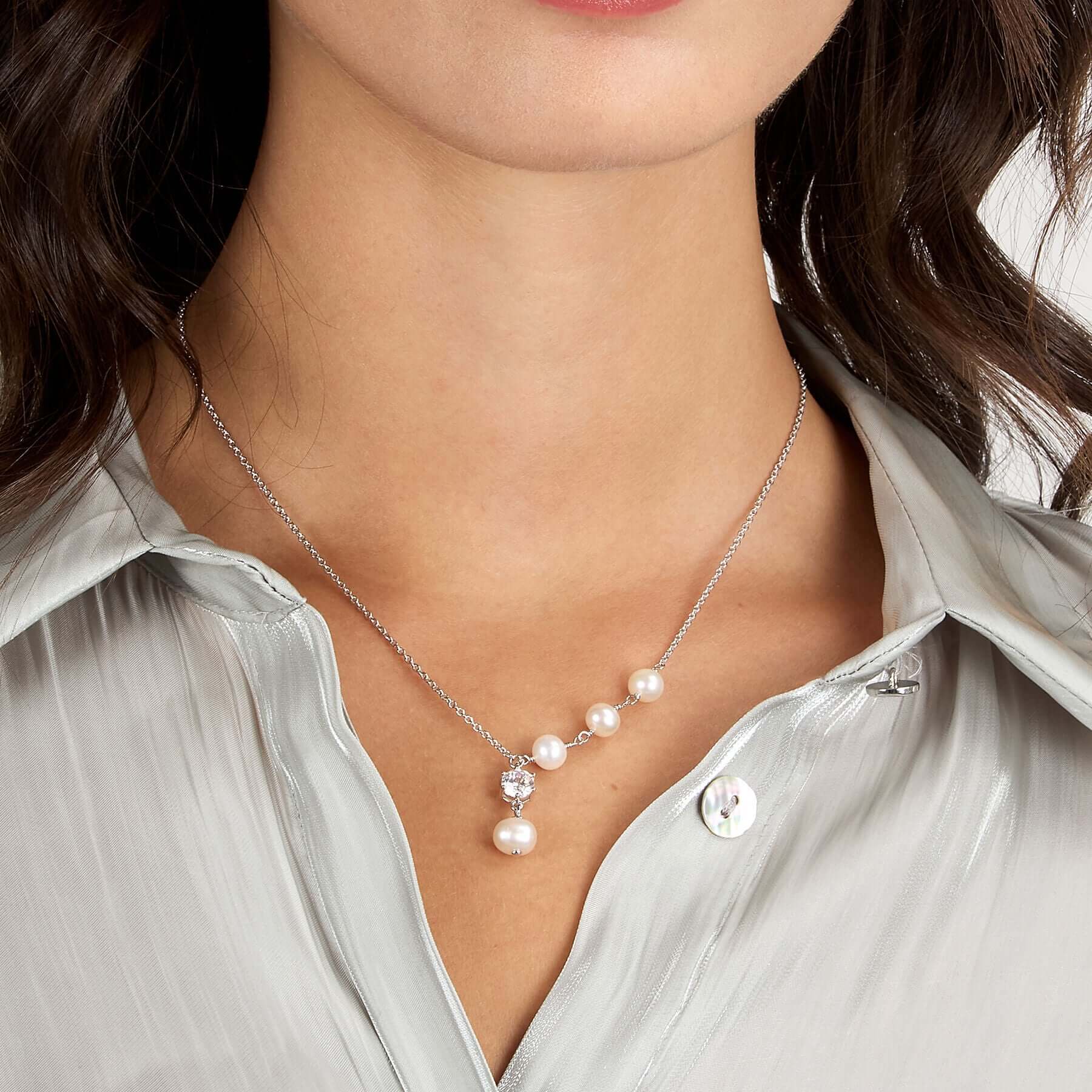 Сребърно колие с родиево покритие , перли и циркон | Morellato Perla
