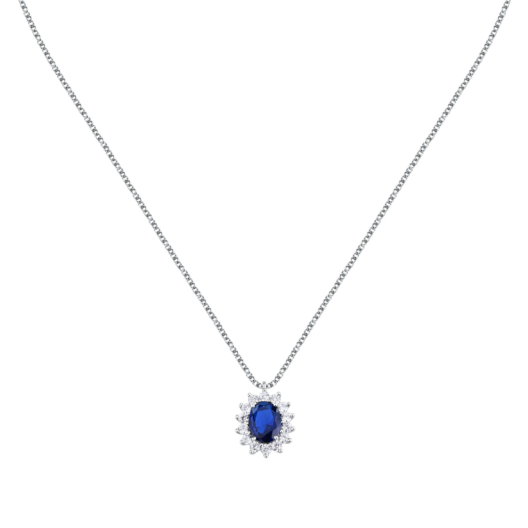 Сребърно колие със син циркон и фини бели циркони в обков | Morellato Tesori