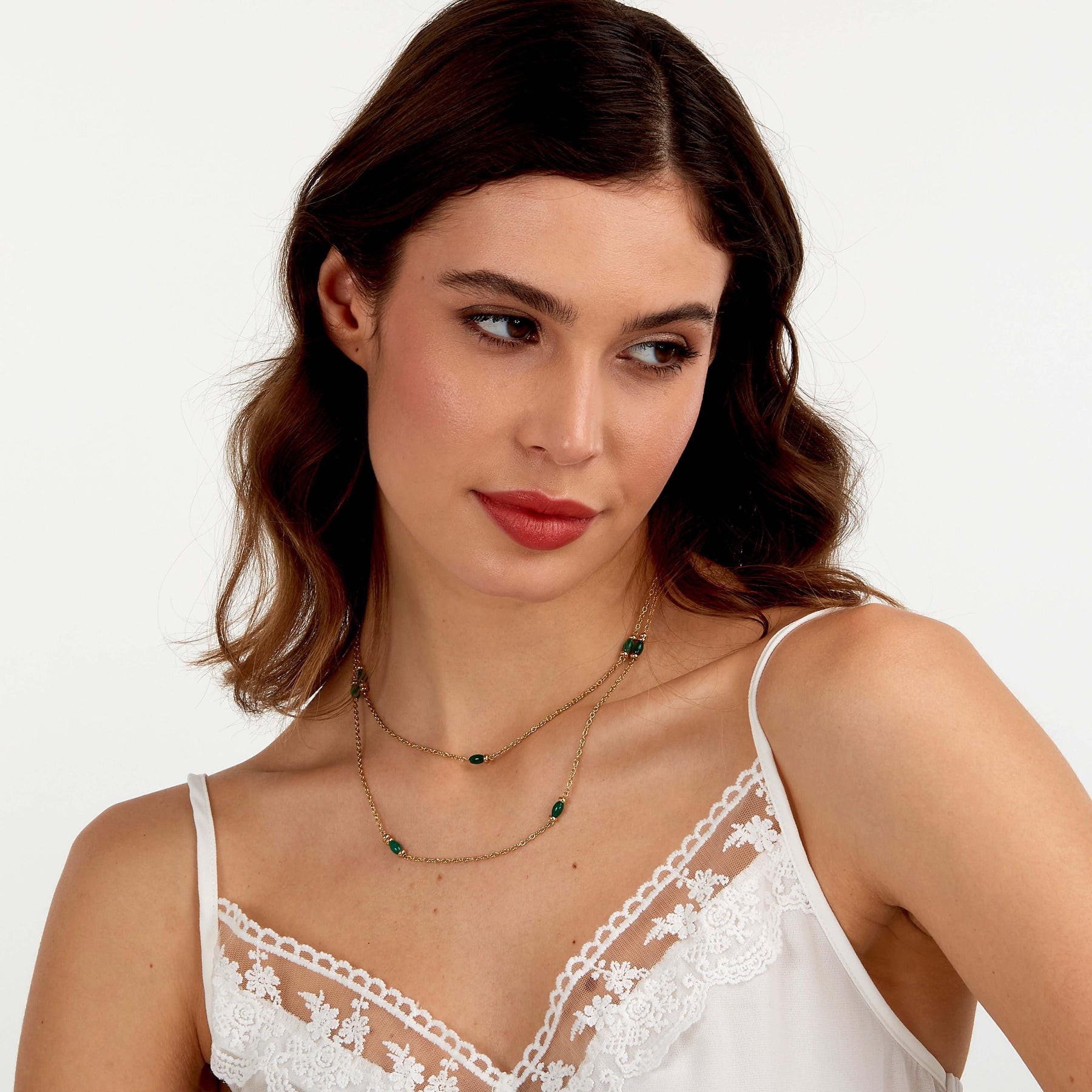 Дамско колие със златно PVD покритие и зелени елементи - 90 см. | Morellato Colori