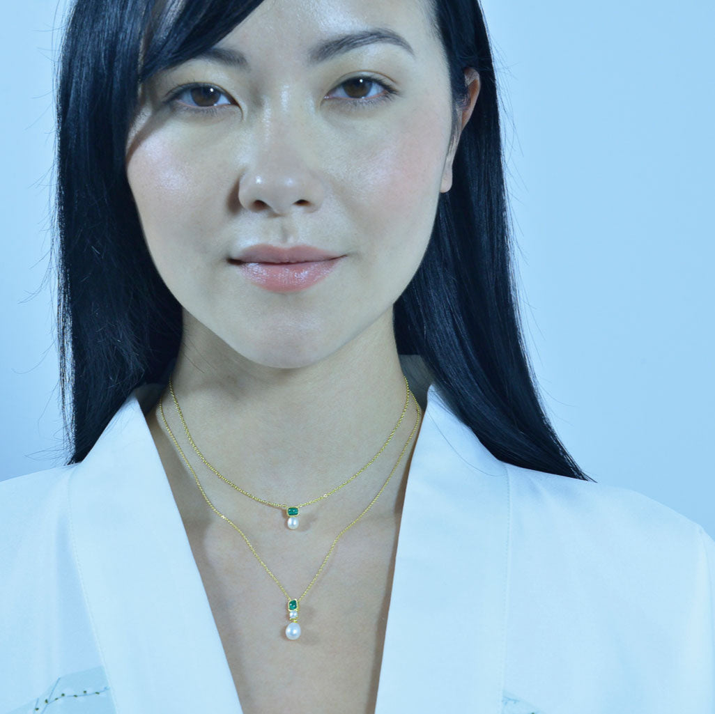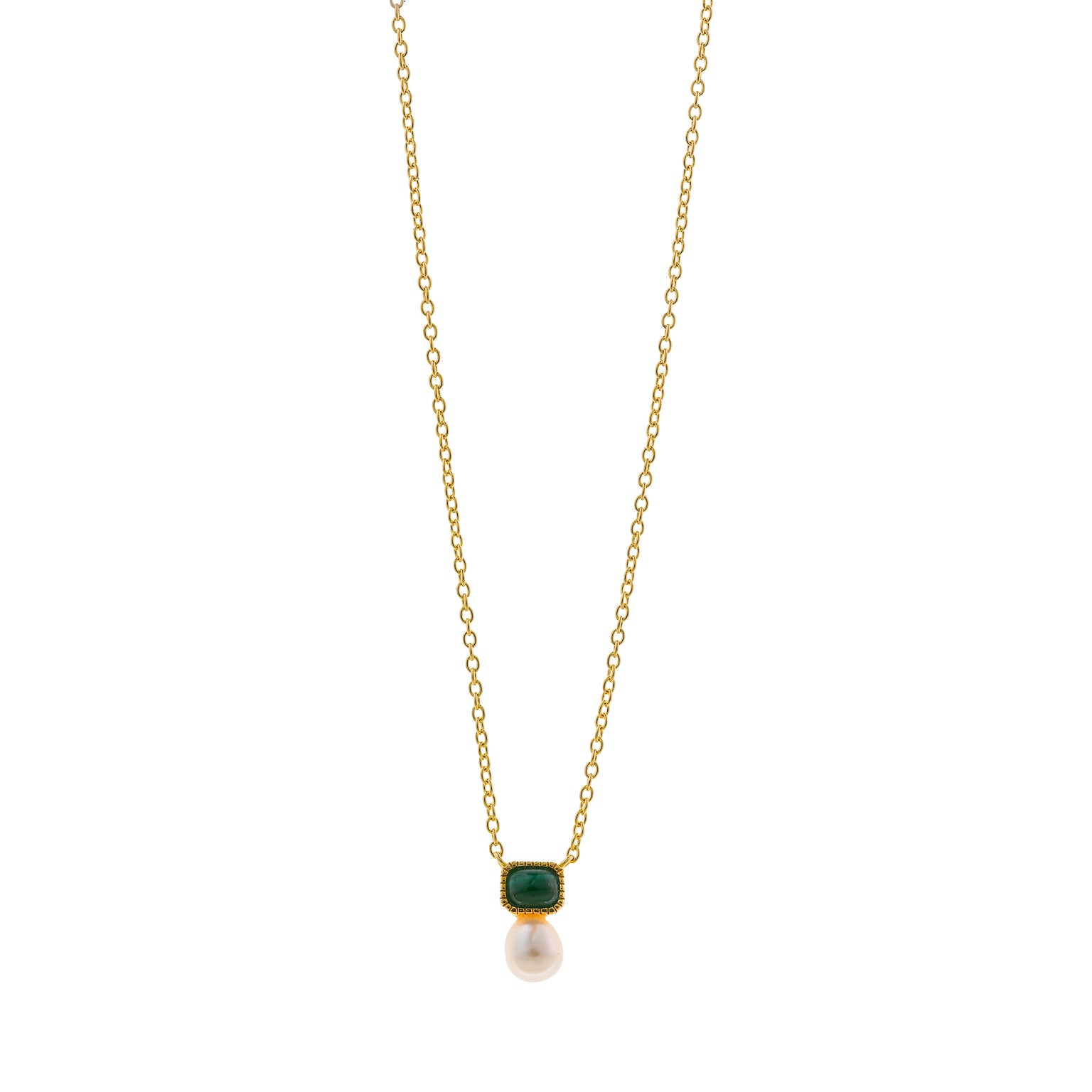 Дамско сребърно колие със златно покритие, перла и малахит | Salvatore plata Heritiere