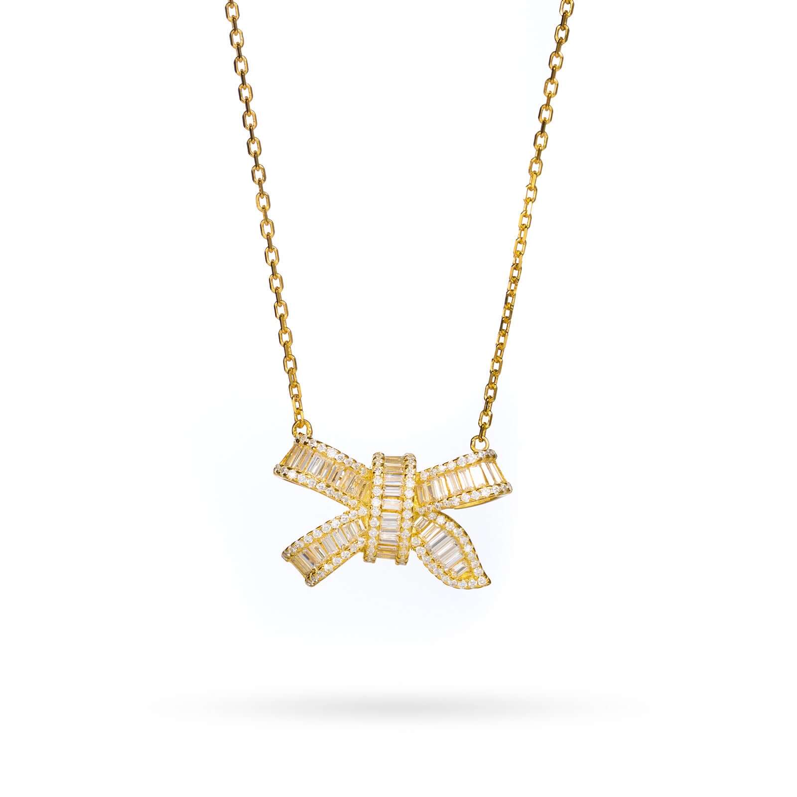 Няма нищо по-стилно от сребърно колие, което носи блясък и финес. Това елегантно бижу от сребро 925 със златно покритие за дълготрайна защита и допълнителен блясък. Акцентът е върху панделката , която е покрита с фини циркони – достатъчно за да заблестите, без да е претенциозно.