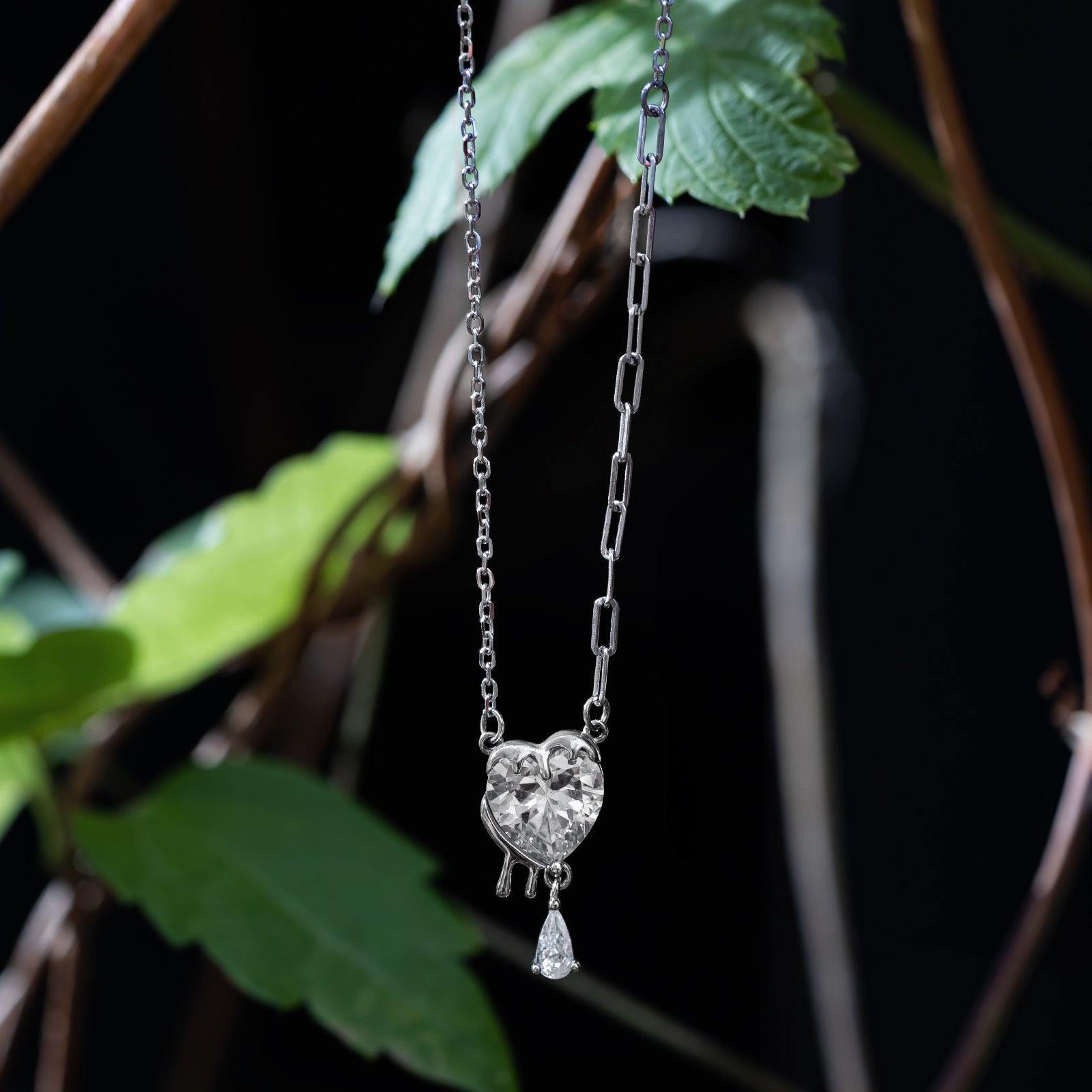 Дамско србеърно колие с формата на сърце с кристали.