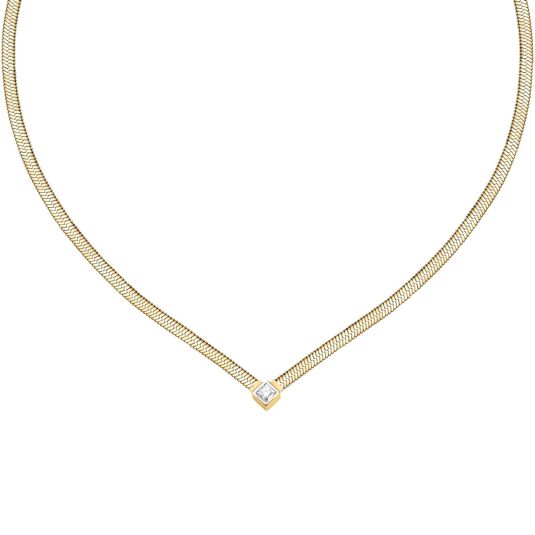 Стилно дамско колие Morellato Gioia SAVY29. Изработено от стомана със златно PVD покритие и инкрустирани циркони.