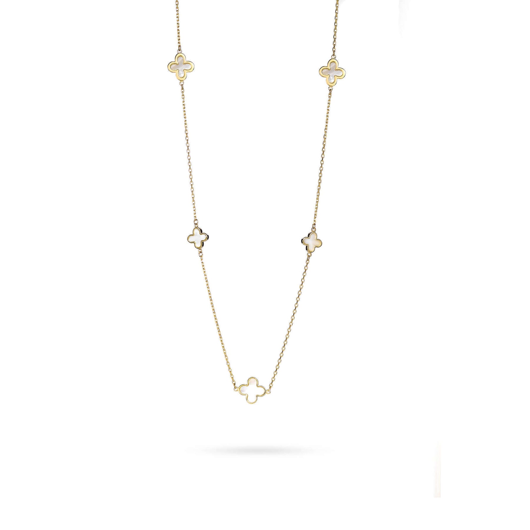 Колие от жълто злато 14K с пет детелини от Седеф| Senso Gold