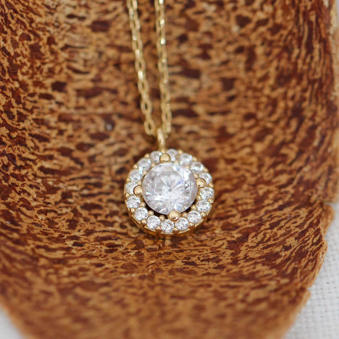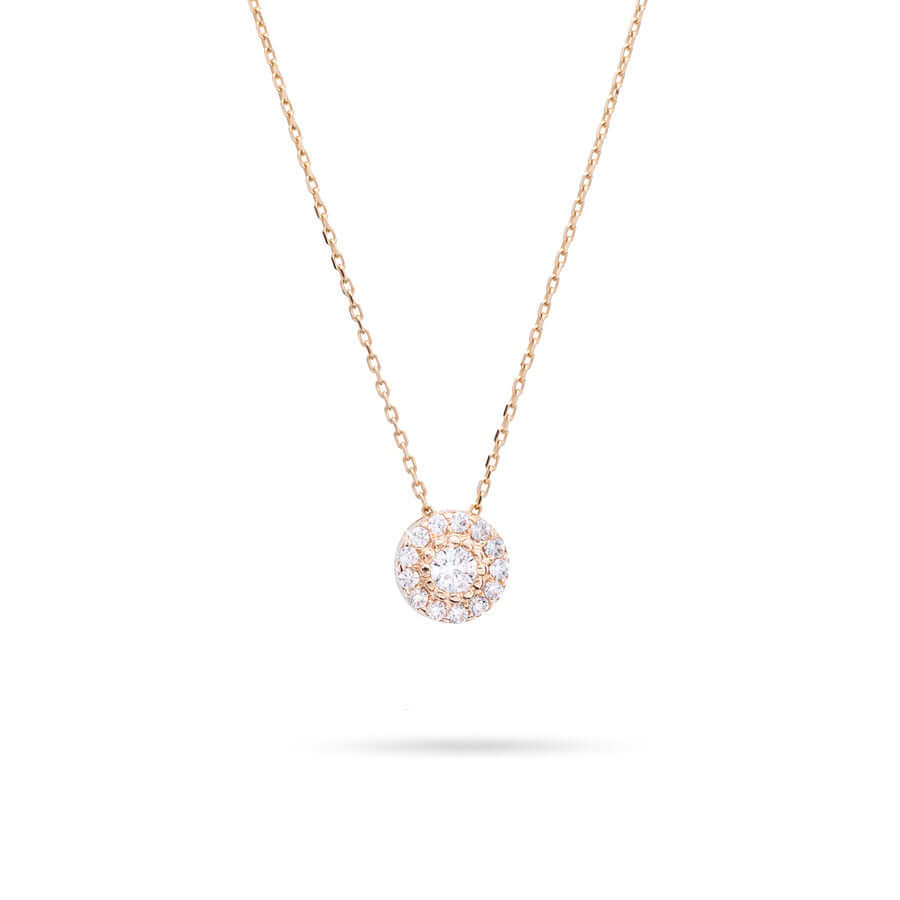 Златно колие Senso Gold Bright с кръгла висулка, инкрустирана с циркони
