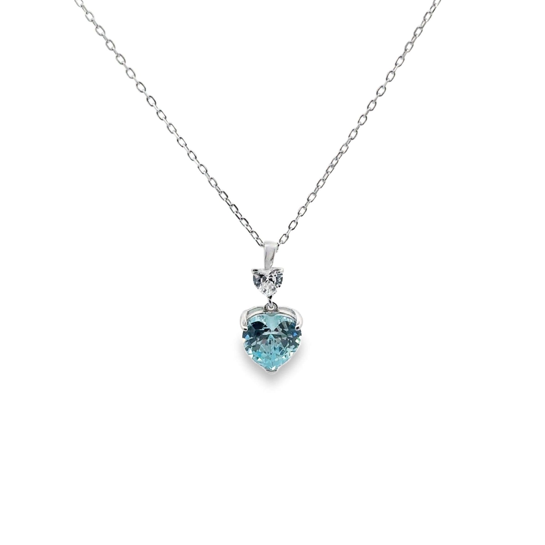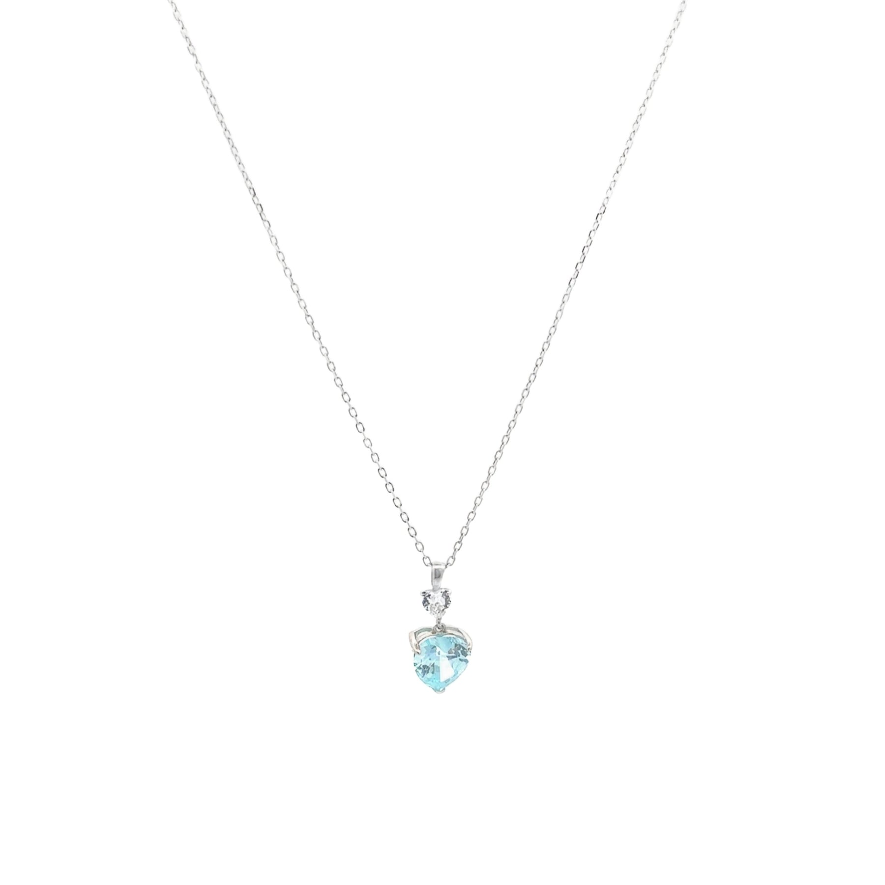 Елегантно сребърно колие със син цирконий във формата на сърце.