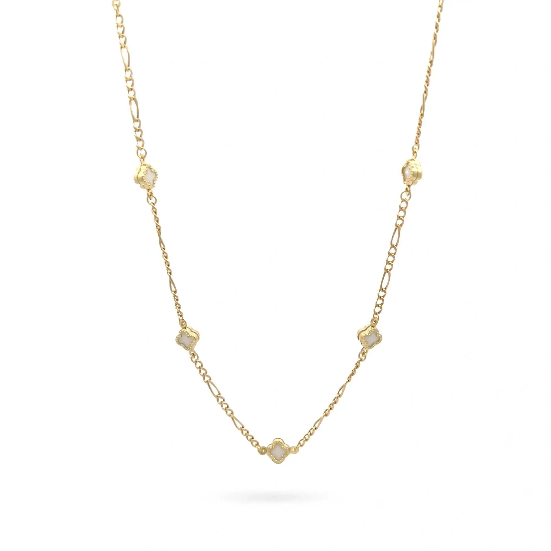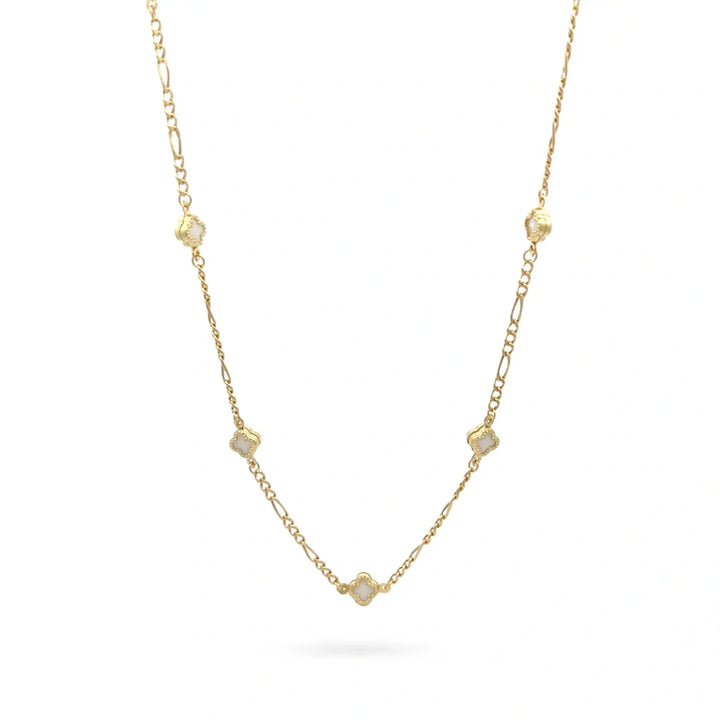 Колие от жълто злато 14K с бял оникс – 9 детелини | Senso Gold
